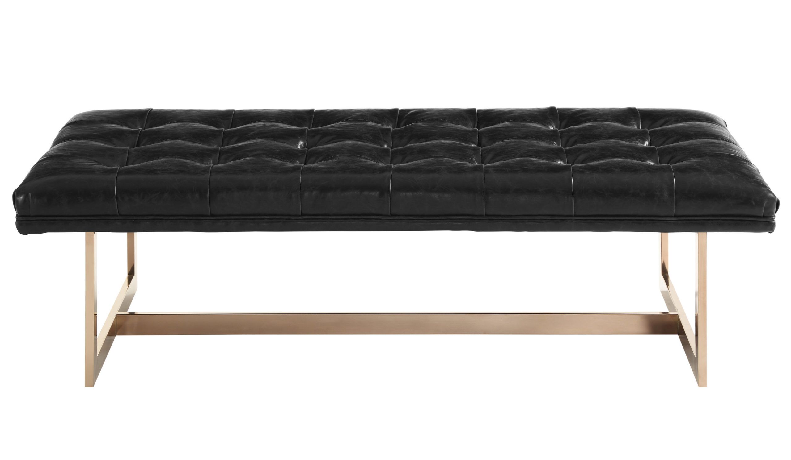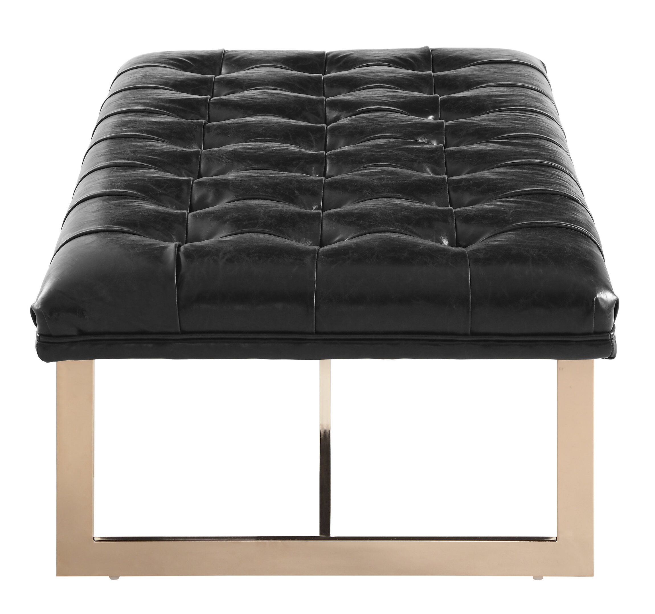 Complement your modern luxe decor with our swoon-worthy Oppland bench. Supported by a glossy rose gold stainless steel frame, and upholstered in rich tufted Vegan Leather, the Oppland comes in black or white and chic all over.