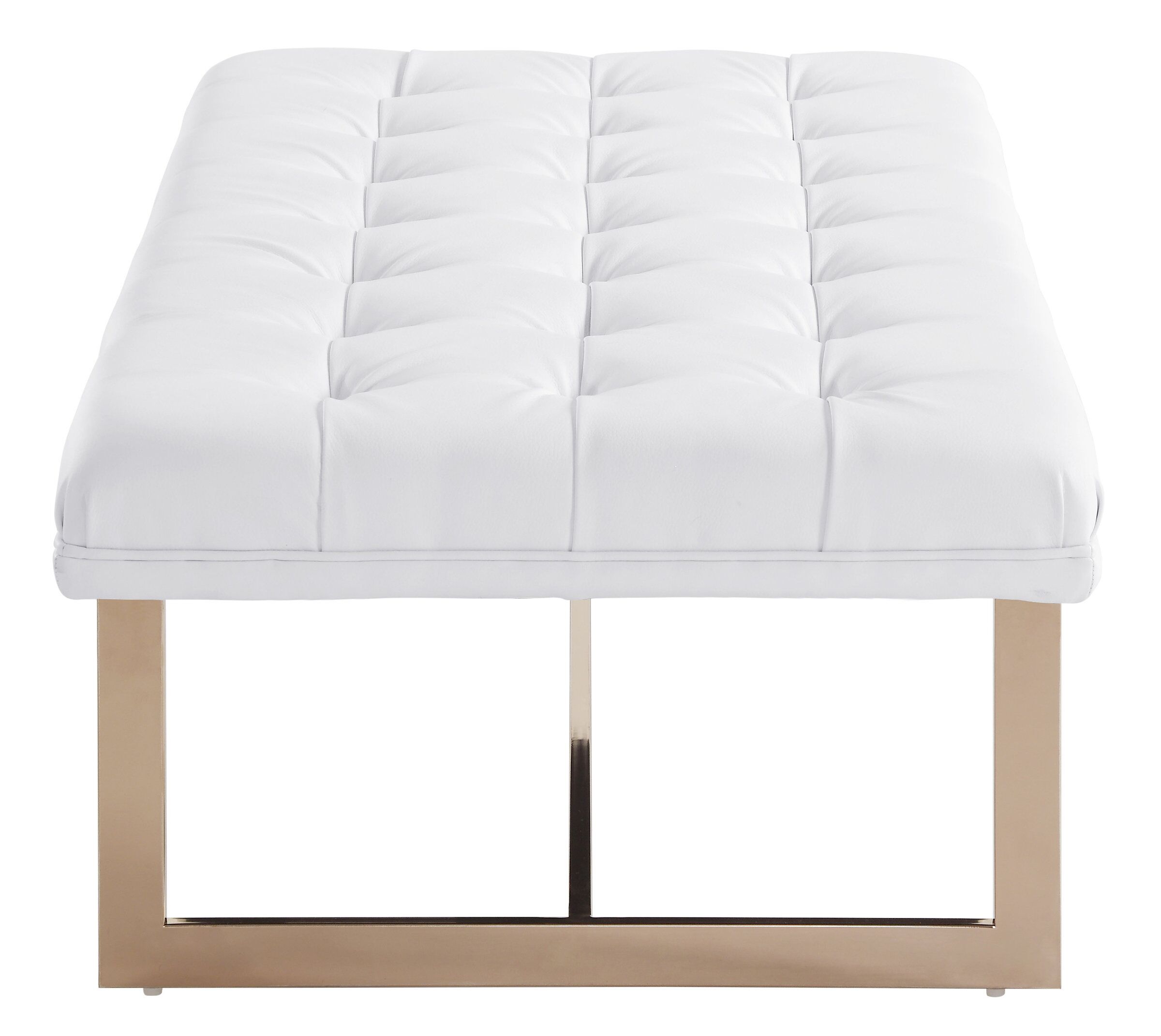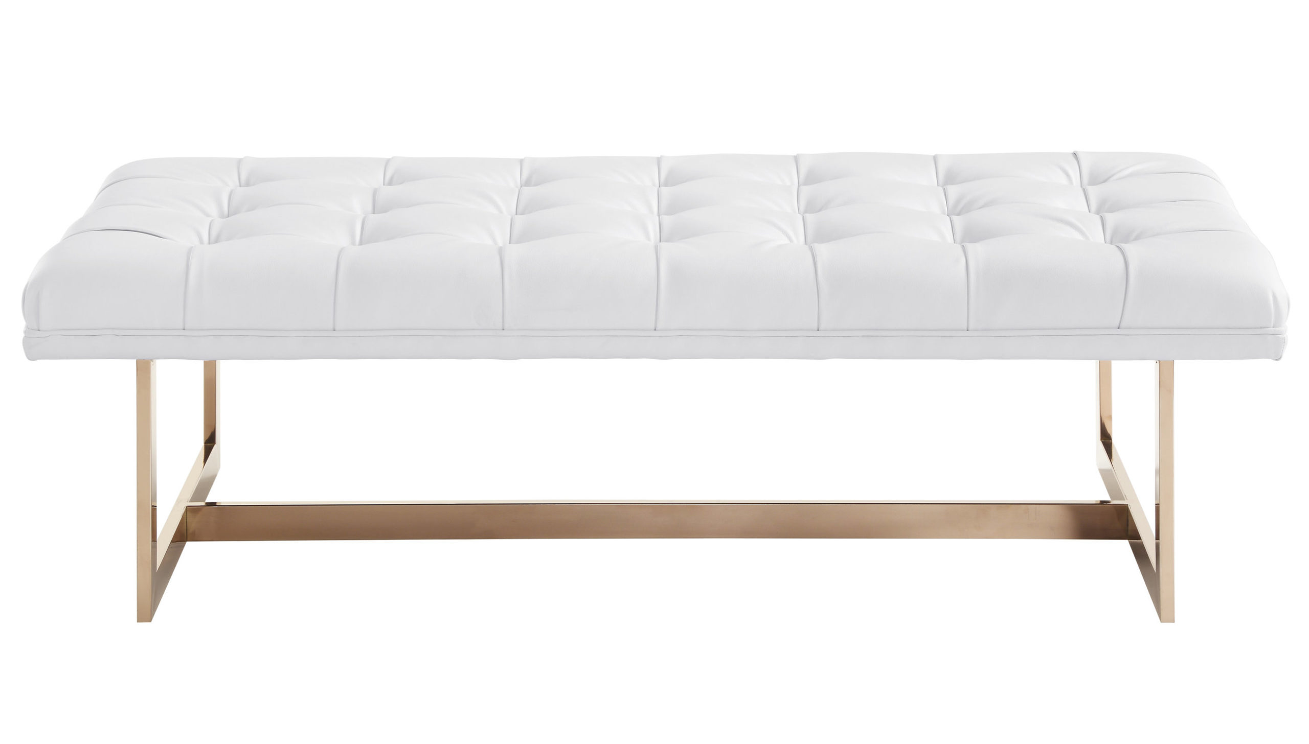 Complement your modern luxe decor with our swoon-worthy Oppland bench. Supported by a glossy rose gold stainless steel frame, and upholstered in rich tufted Vegan Leather, the Oppland comes in black or white and chic all over.