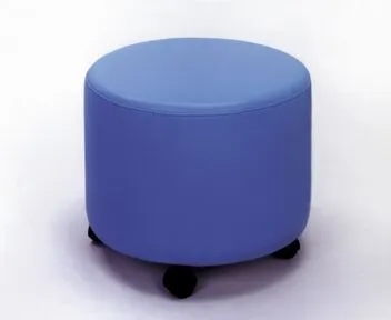 Fully upholstered round modern pedicure ottoman on casters is available in custom colors. Size: 12.5″w x 12.5″d x 15″h