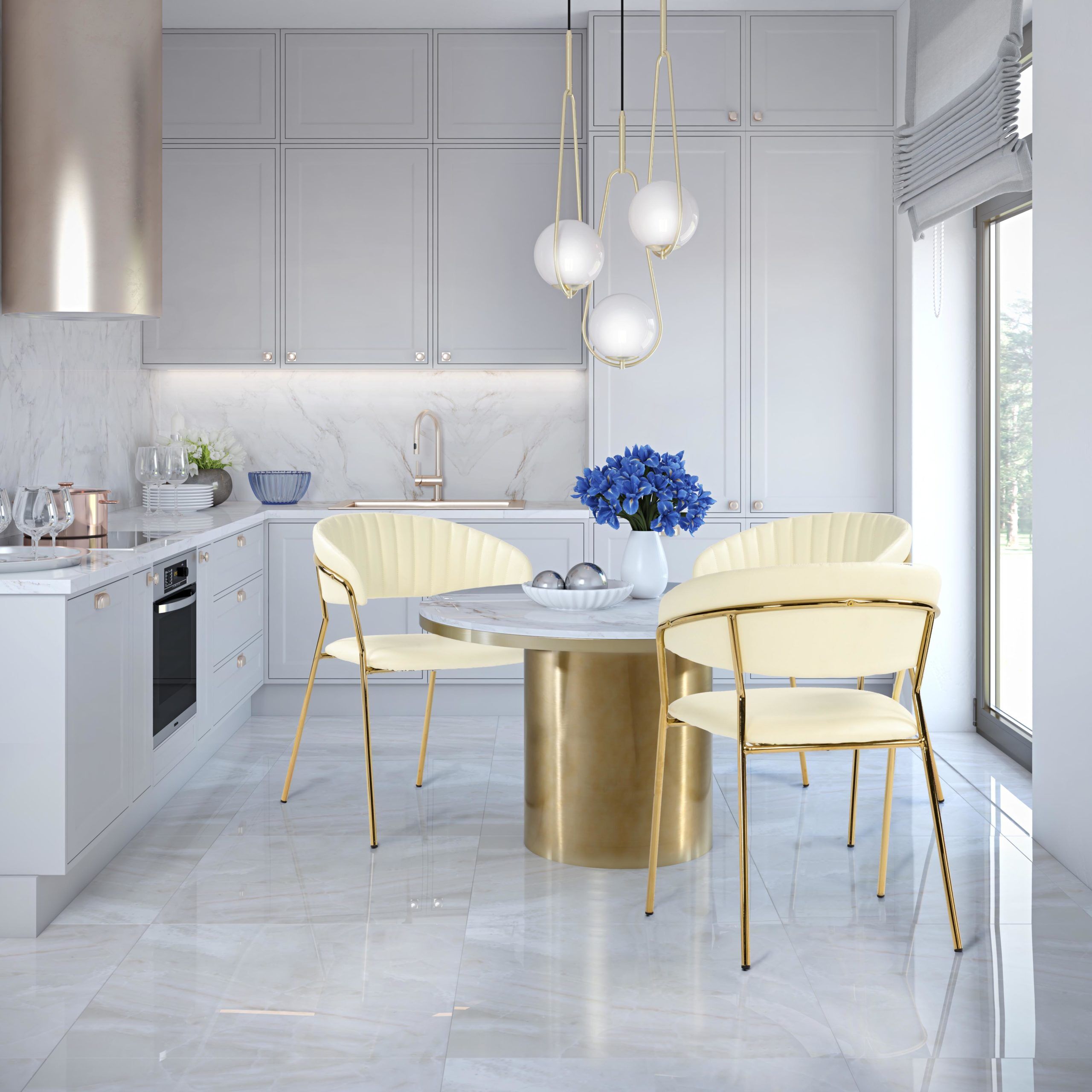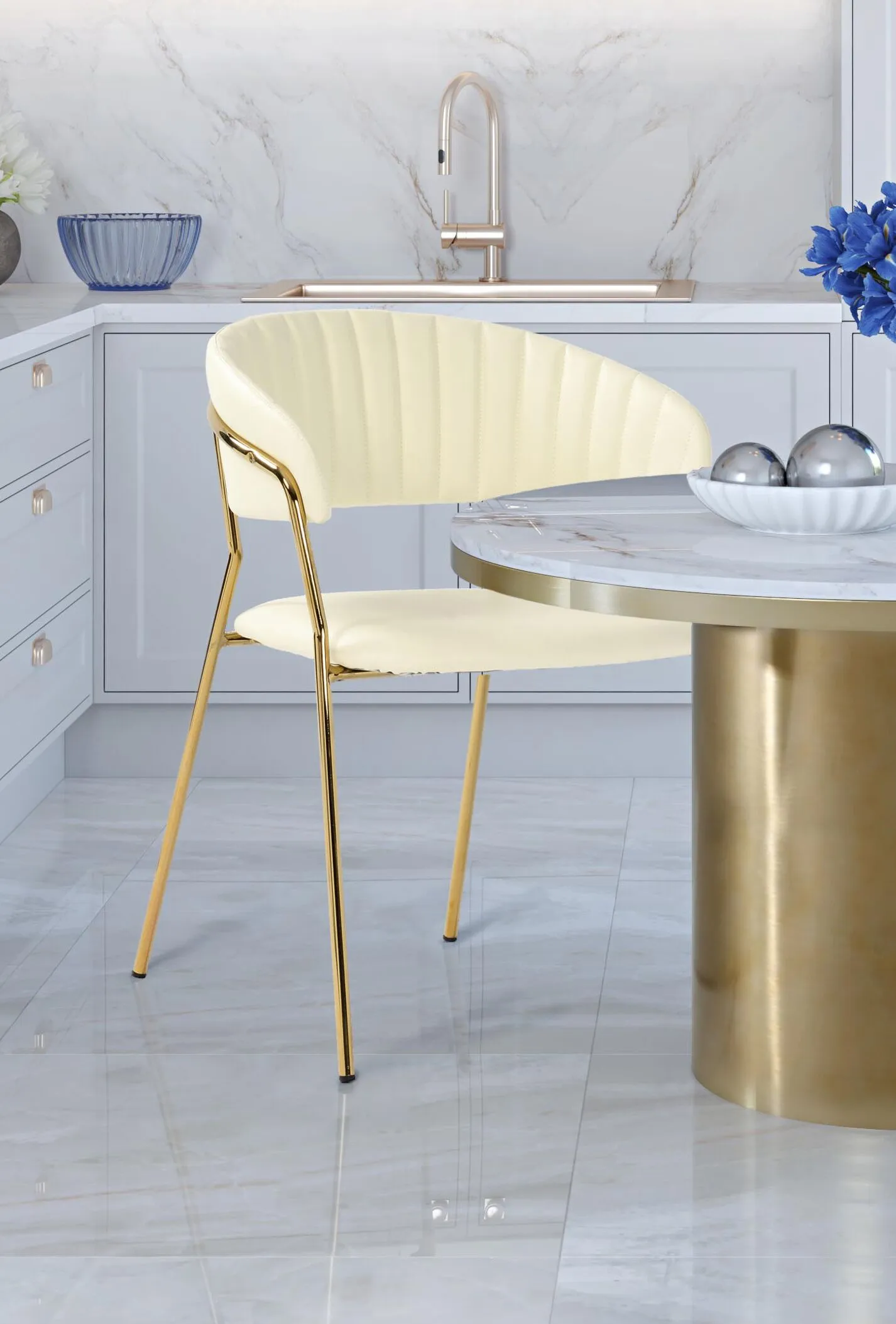 The Padma Collection speaks a modern purpose. Its polished gold frame combined with its cushioned upholstered seat and back, provide an edgy twist that will give any room the glam effect it deserves. Available in multiple colors.