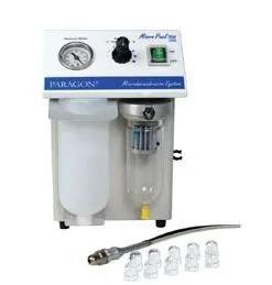 Microdermabrasion uses a fine jet of crystals to gently and painlessly peel the skin to reveal new softer skin with improved texture. Self-enclosed system with vacuum suction removes crystals along with dead skin cells. Microdermabrasion also promotes the production of new skin cells in the basal (deepest) layer of the dermis, cleans pores and stimulates collagen networking that can further rejuvenate skin’s appearance. This non-invasive procedure is simple, quick, suitable for all skin types, and has virtually no discomfort or down time for recovery. Microdermabrasion can be used successfully on light or dark skin and is beneficial for hyperpigmentation, acne/acne scars, fine lines, wrinkles, oily skin, enlarged pores, stretch marks, and surgical scars. Can be placed on tabletop, stainless steel cart, or atop the OxyMax oxygen concentrator machine. For use by licensed professionals only. FDA Listed HEPA/ULPA bacterial filteration Patented gravity feed crystal delivery system More hygienic than diamond tip systems Made in the U.S.A. 9.5″Wx17″Dx14″H