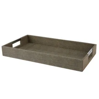 Add color to any room with the rich, vibrant hue of the grey Pasadena tray. Used either as a serving piece or decorative item, this tray will be a perfect addition to any home. Faux-snakeskin texture; stainless steel handles. Dimensions 3.3″H x 25.3″L x 13.6″W