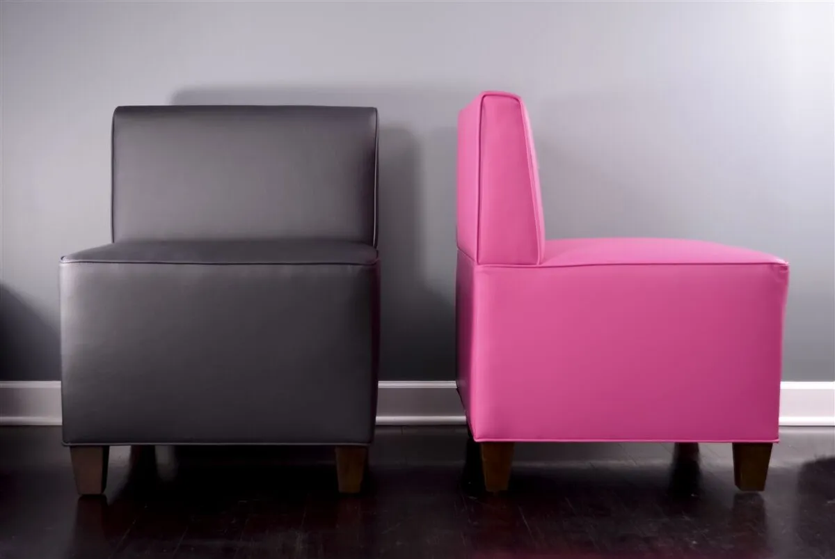 Bold and contemporary, the Payton chair’s rectilinear shape make it a statement pieces. The sloped back and cushioned seat provide maximum comfort. Classic detailed such as the piping around the cushions and 5″ taped wood legs a versatile fit for any environment. Available in any of our standard vinyls or COM.