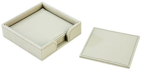 A perfect necessity for any home, these coasters provide a rich style and practical function. Not only can the Pebble Coasters prevent unsightly water stains from ruining a tabletop, but they add a much needed pop of color to any room. Set includes 4 coasters and 1 caddy; pebble faux leather texture. Dimensions 1.4″H x 4.5″L x 4.5″W