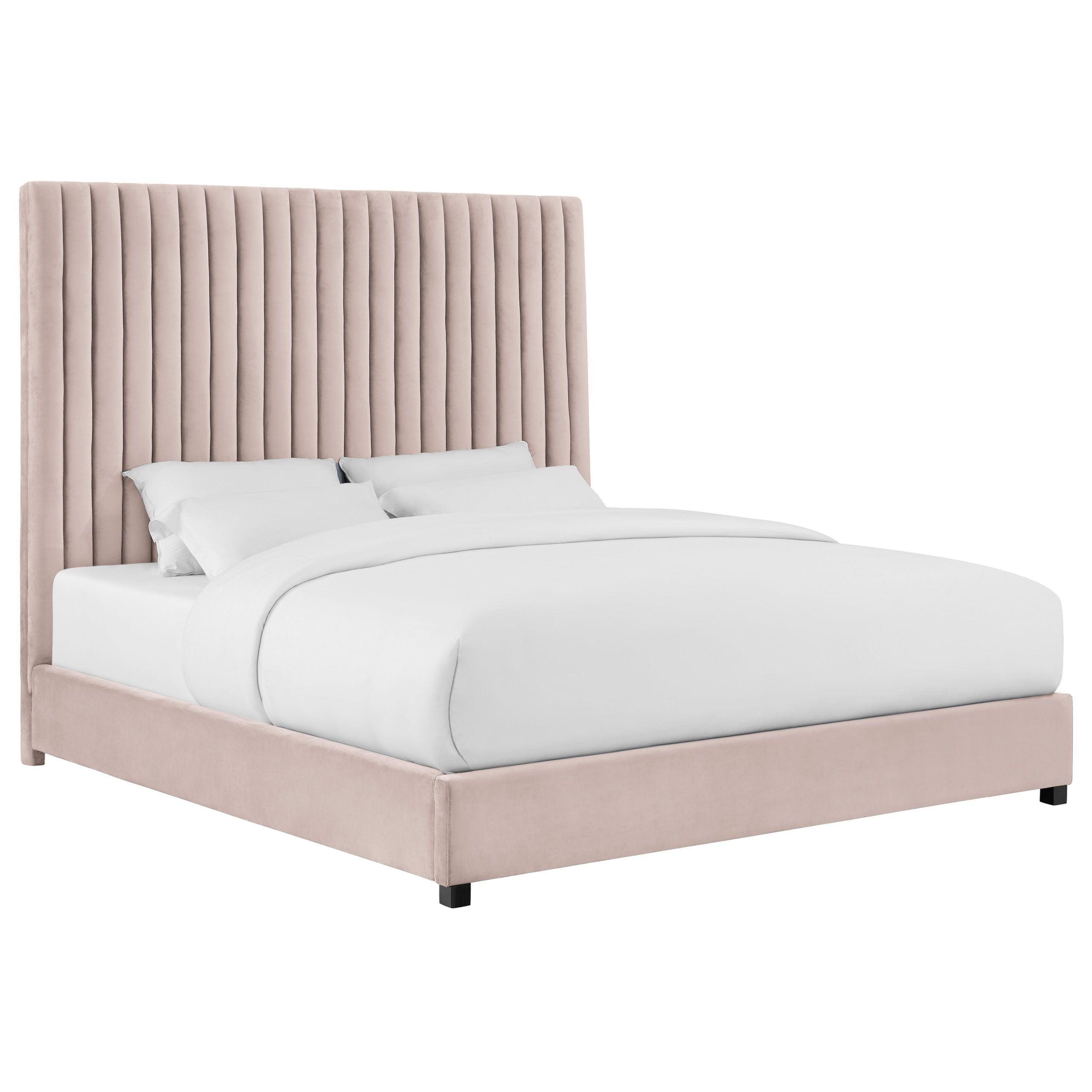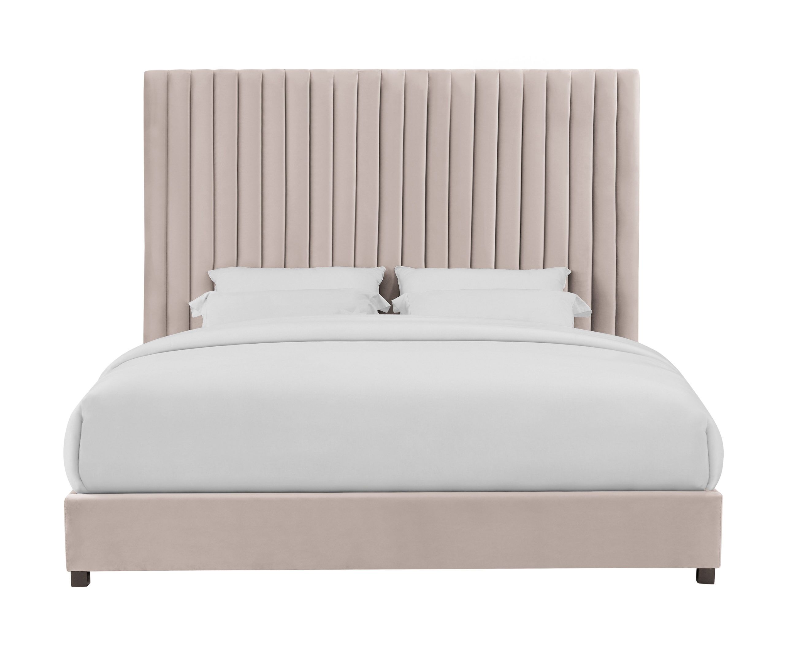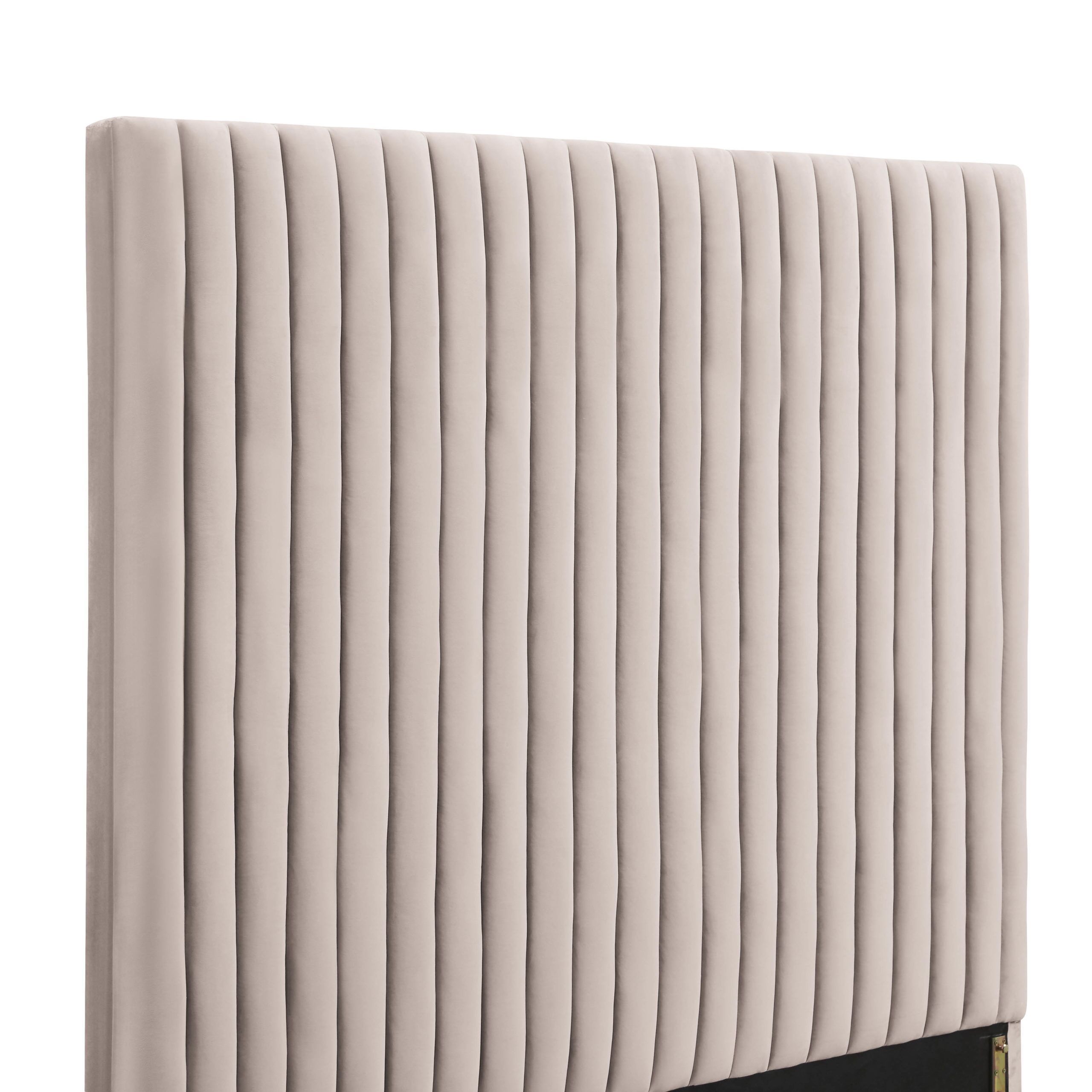 - Tall headboard with channel tufting