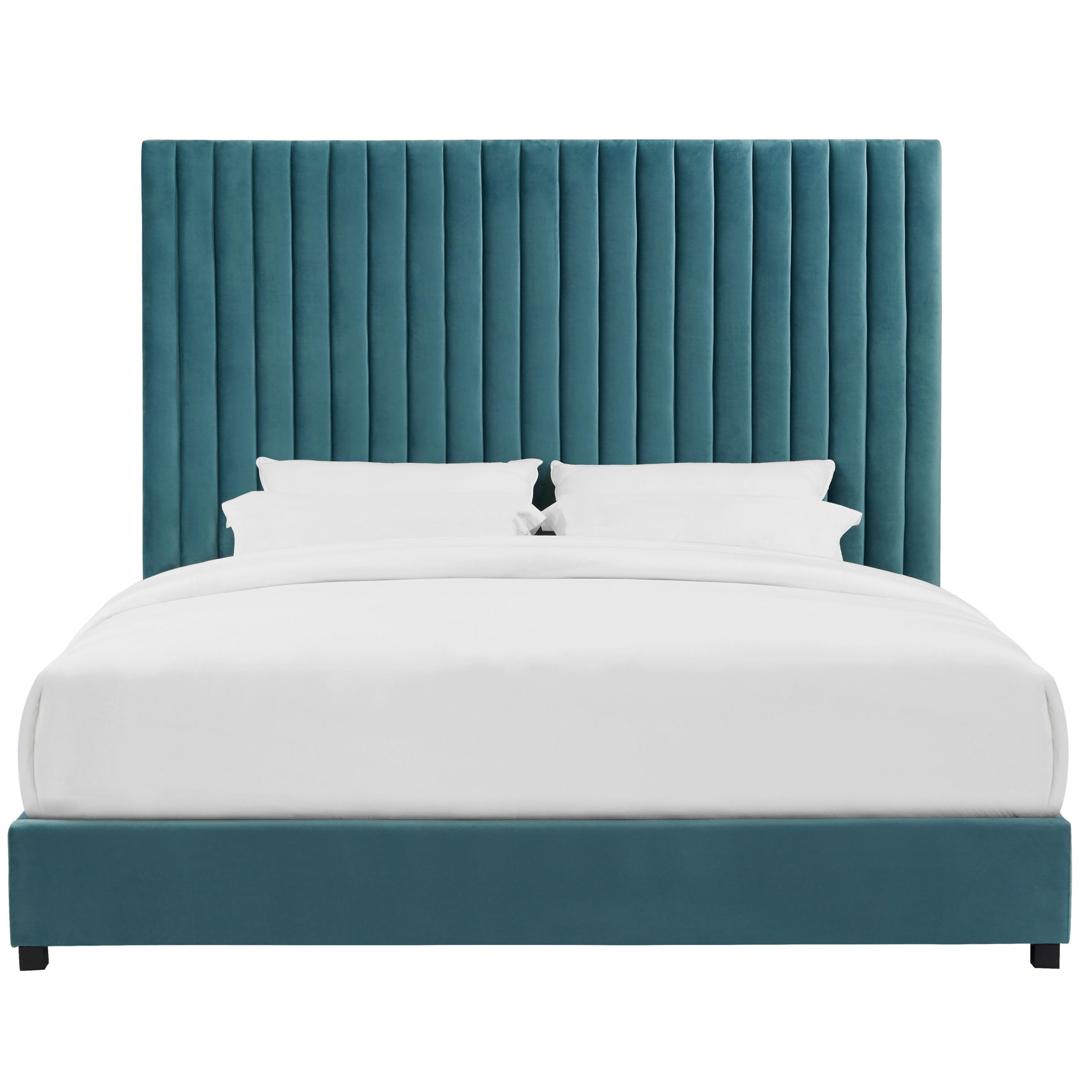 - Tall headboard with channel tufting