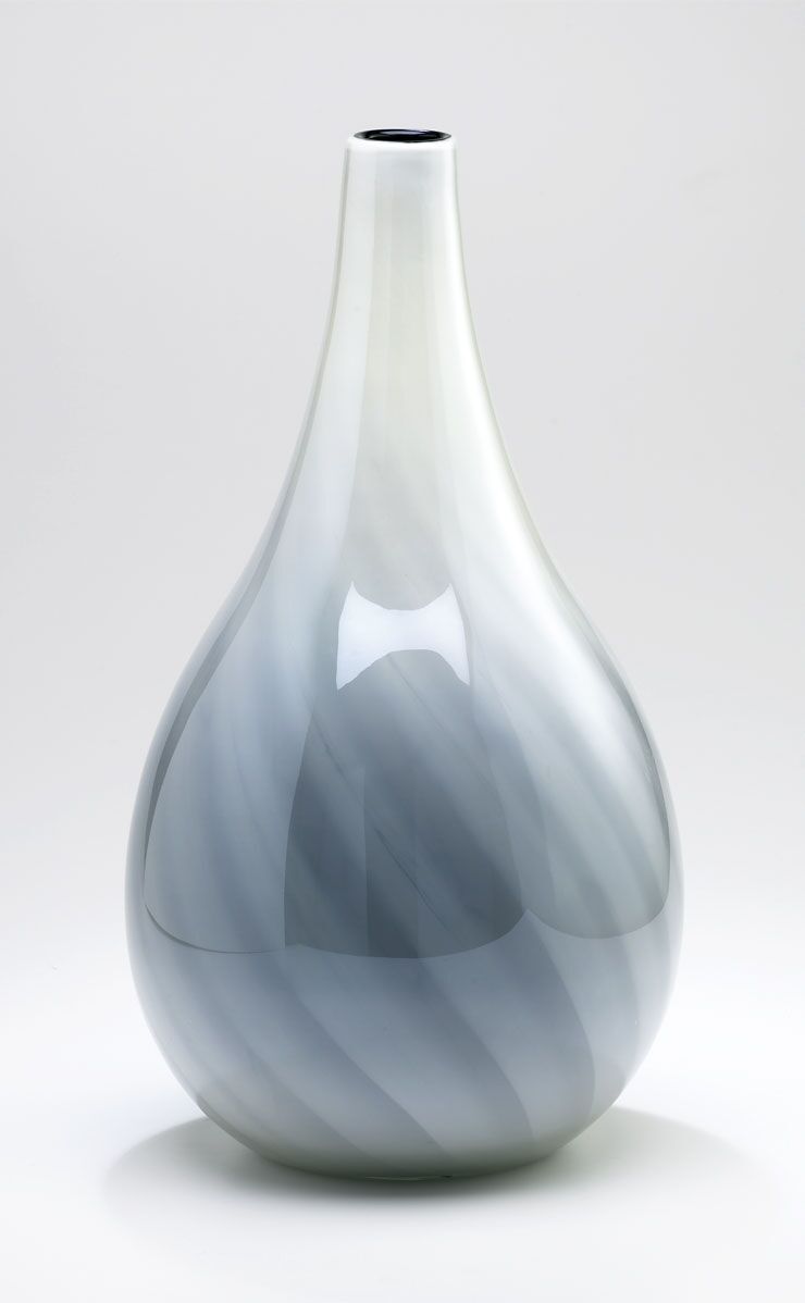 White and smoked blown glass vase. 23.5″(h) x 13.5″(dia)