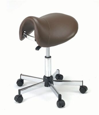 Upholstered pony seat task stool is available in custom colors. Seat adjusts from 18″ to 24″. Size: 15″w x 16″d x 18″ to 24″h