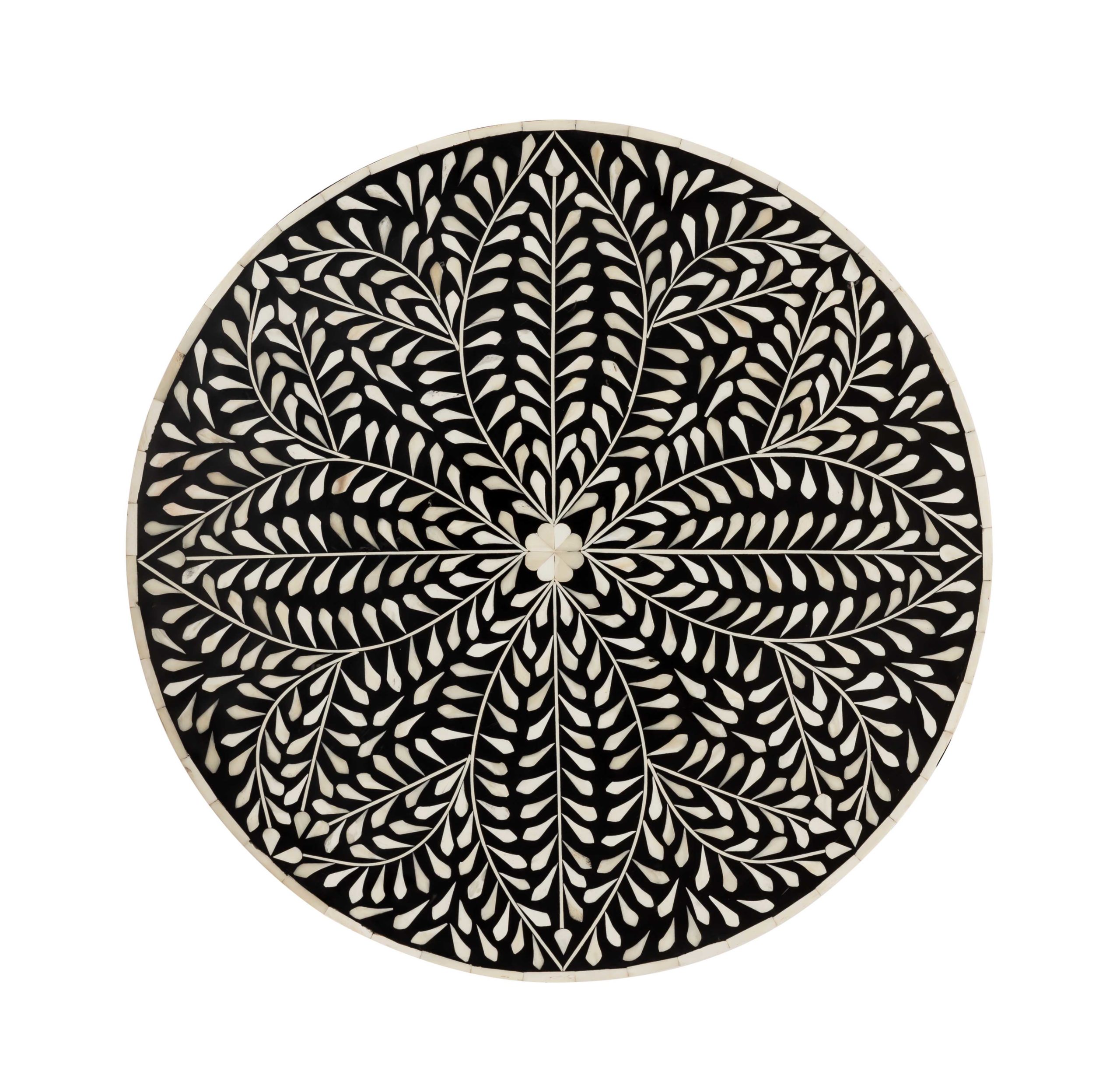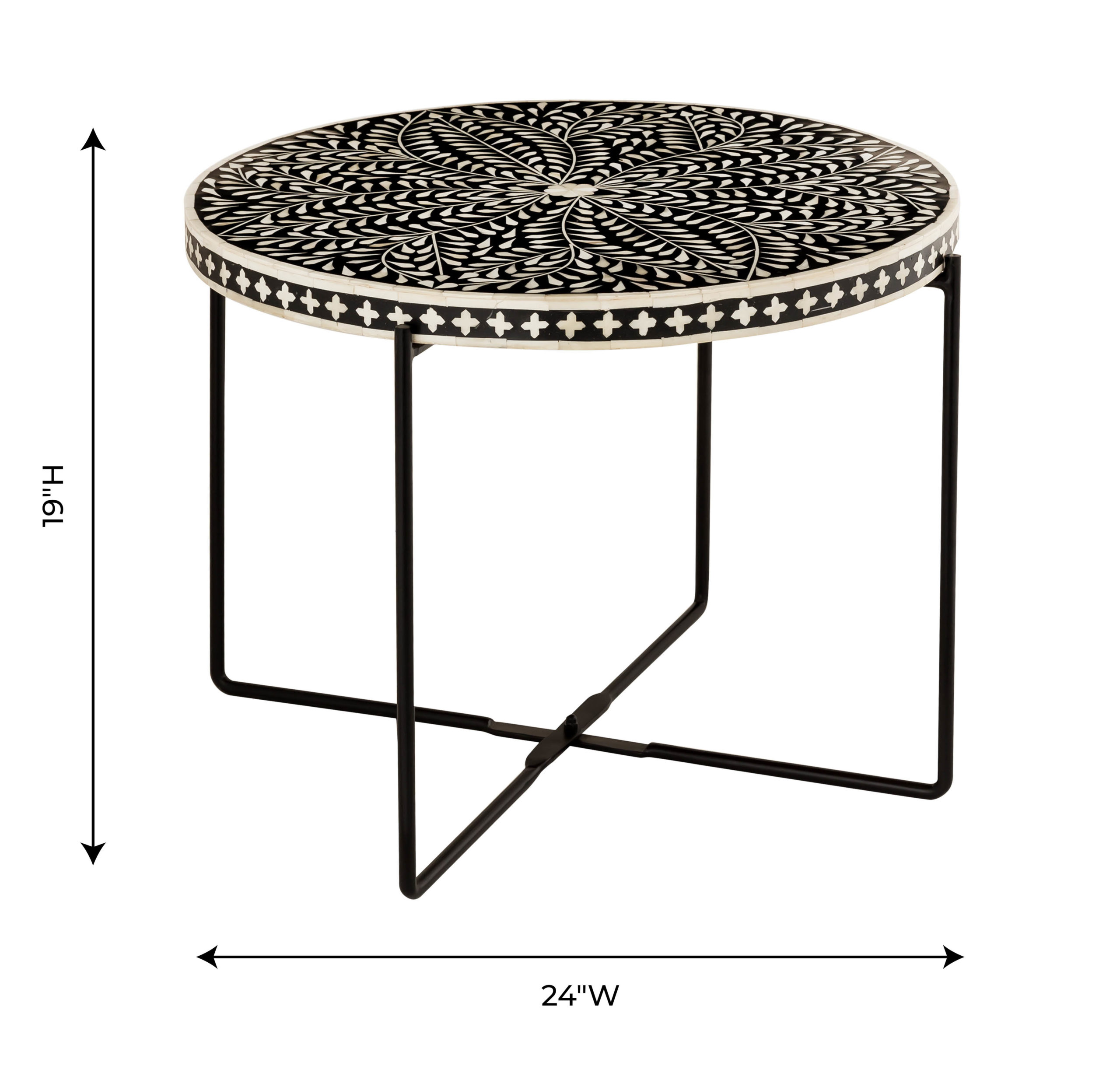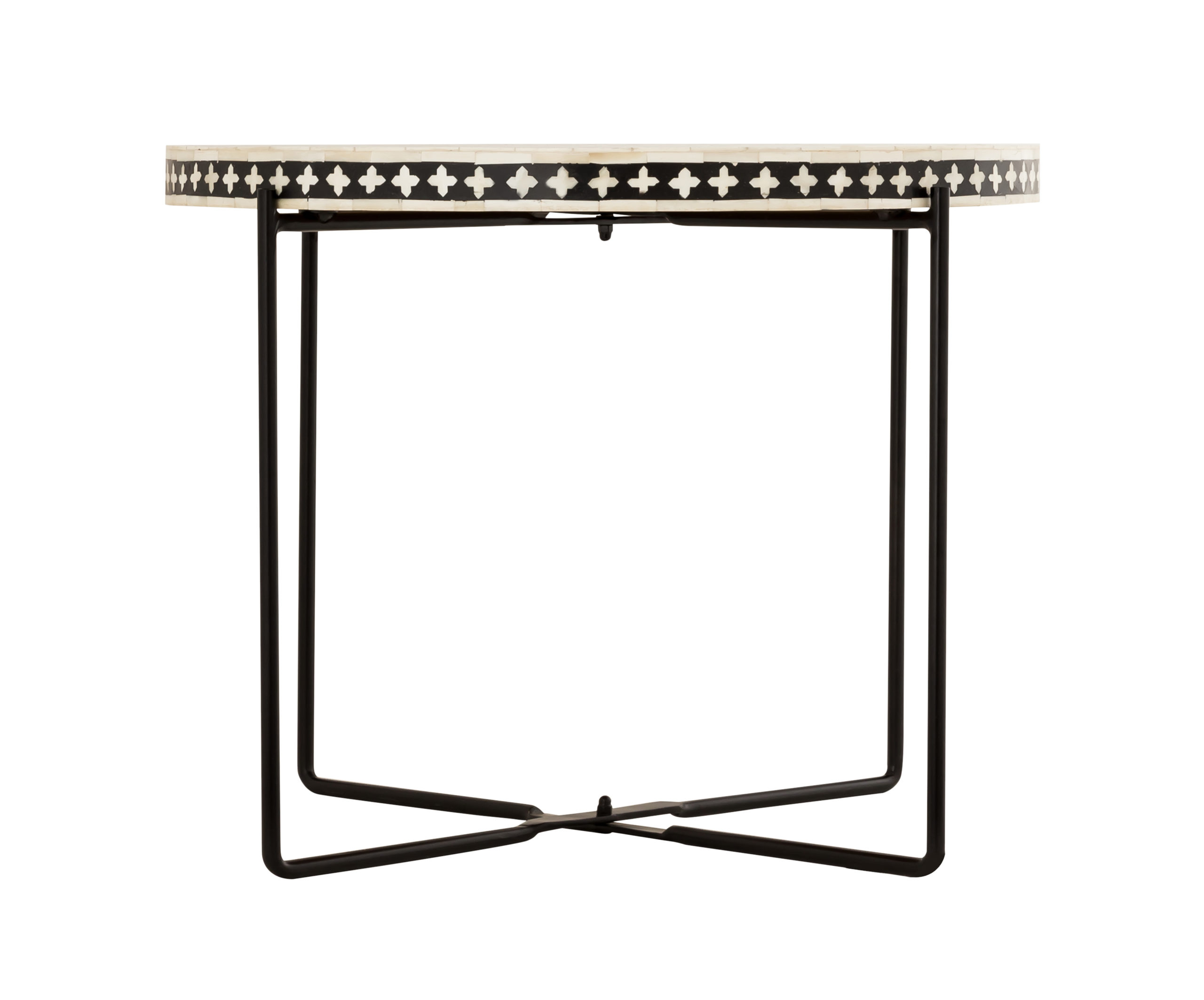 Handcrafted bone-inlay mosaics give this otherwise simple occasional table an undeniable sense of luxury. Its fold-able, yet sturdy base offers convenience and minimalist design.