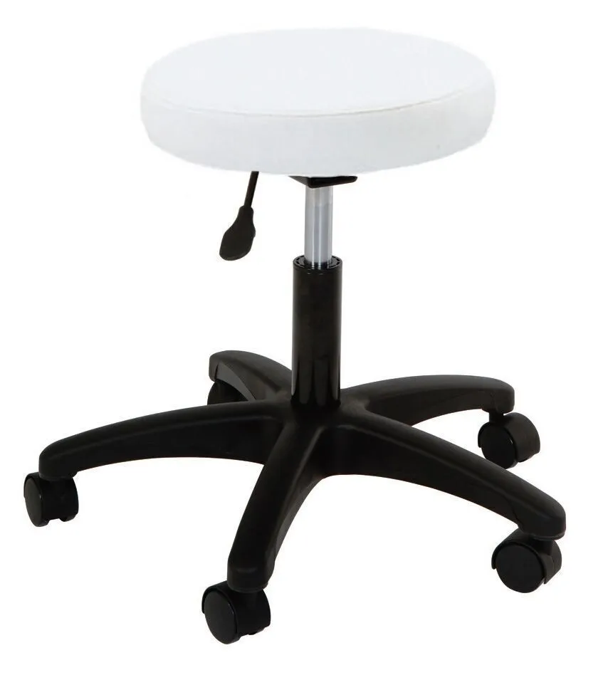 Rest easy in this round air-lift stool from Silhouet-Tone. Five whisper-quiet rolling casters on a large stable base make this stool a simple addition to your treatment room with easy access to supplies and a generous 3” padding for maximized comfort and superior quality. The stool also features a hydraulic piston for smooth height adjustments. With a variety of upholstery options, the stool can be suited to match any decor. All upholstery is flame-resistant and easy to maintain with gentle cleansers.