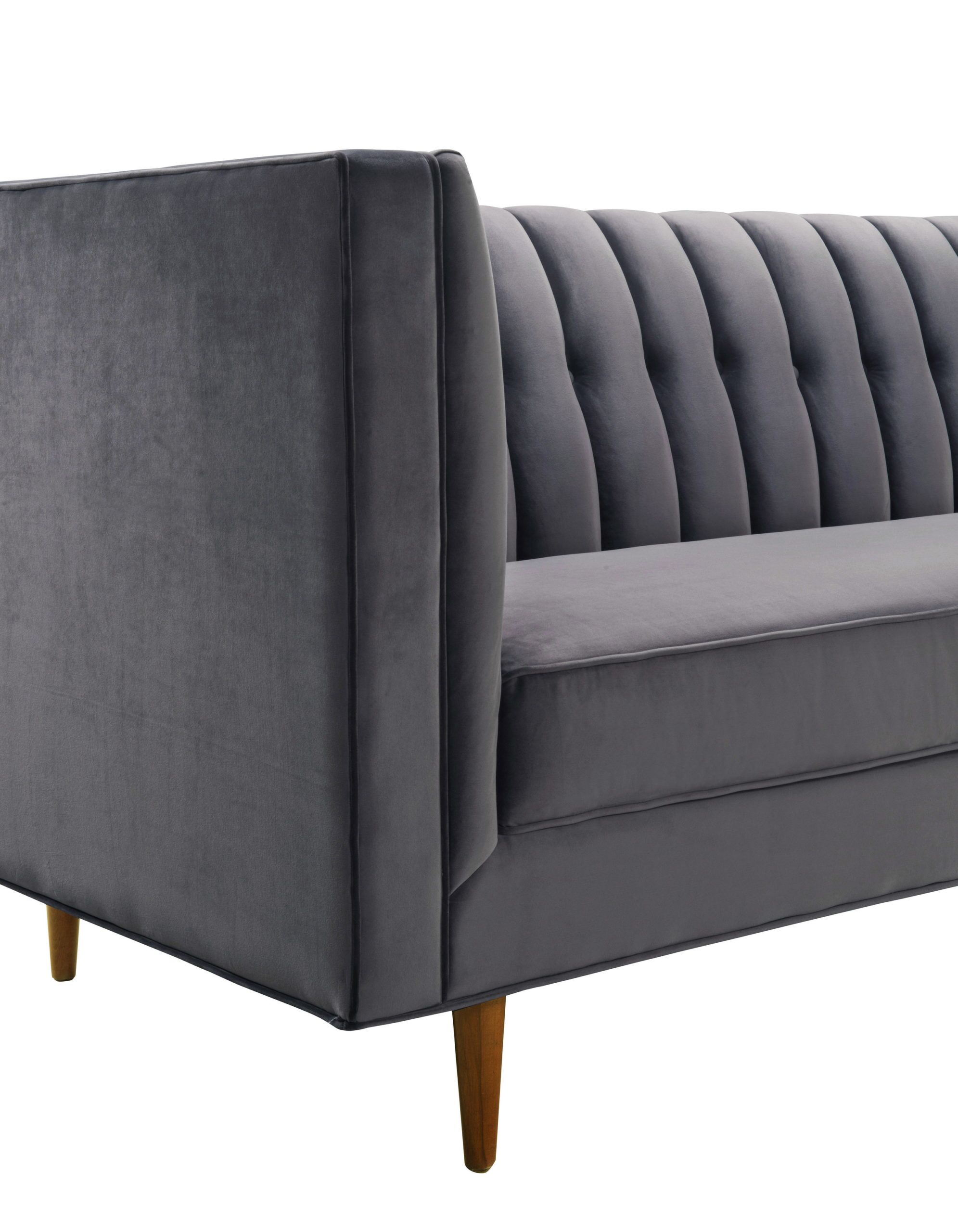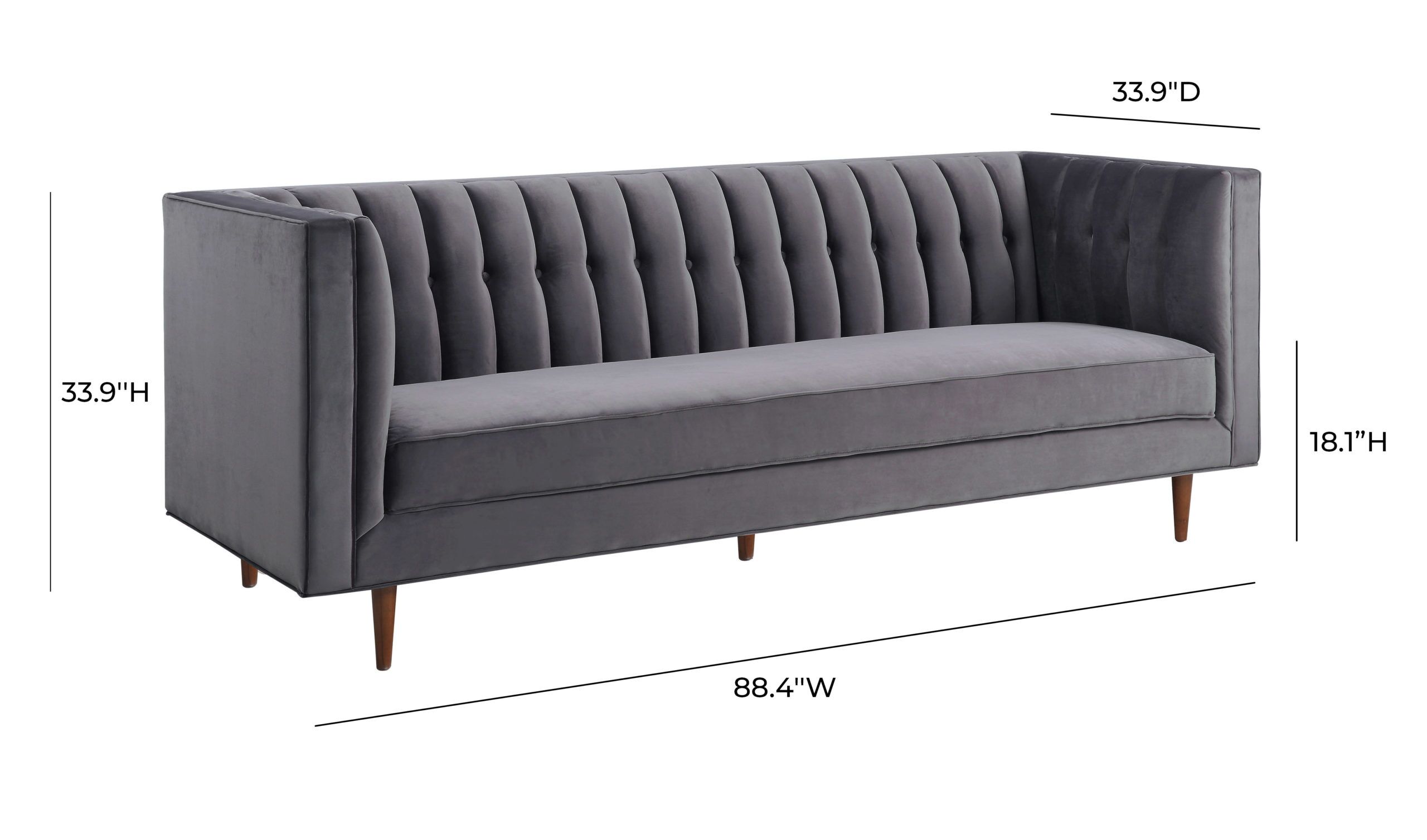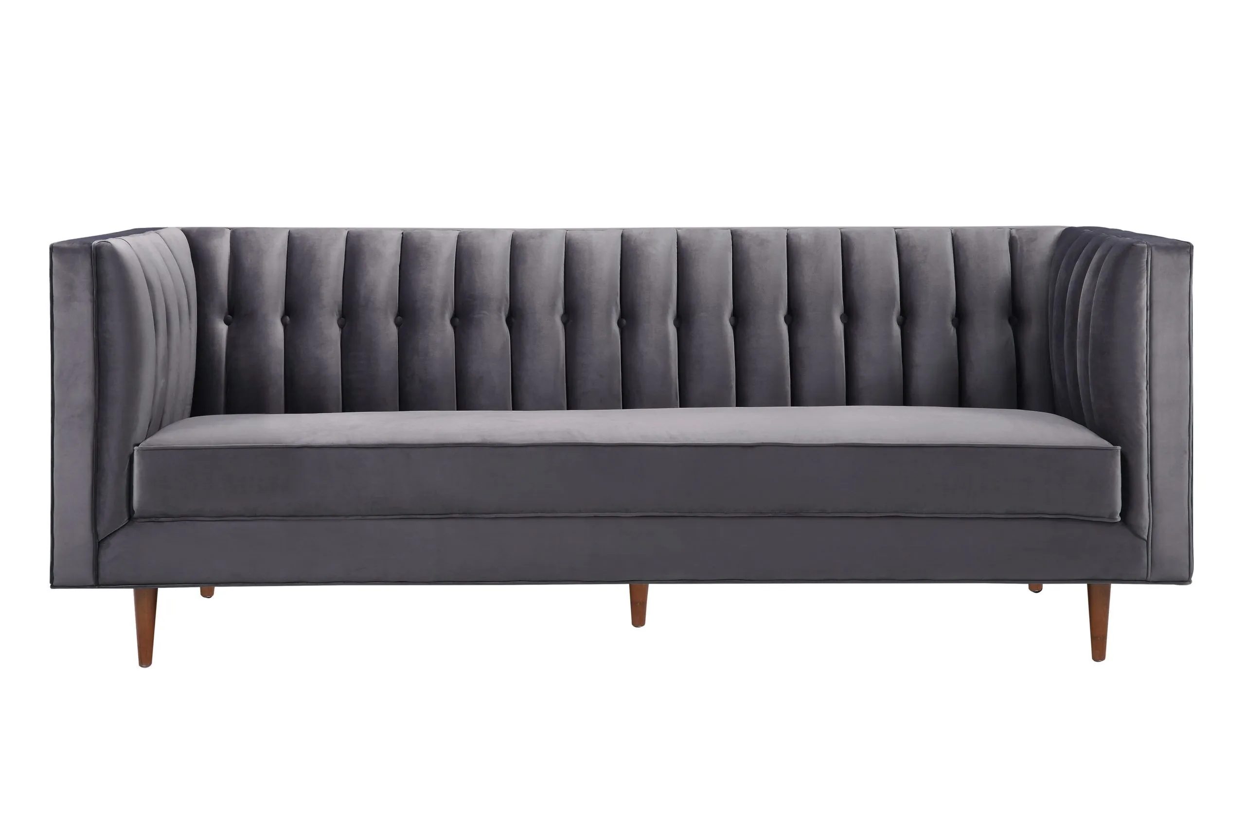 If you are looking for a sofa that’s a showstopper, look no further. Featuring a tuxedo style frame with velvet channel tufting and slim wooden legs the Sebastian offers comfort and style.