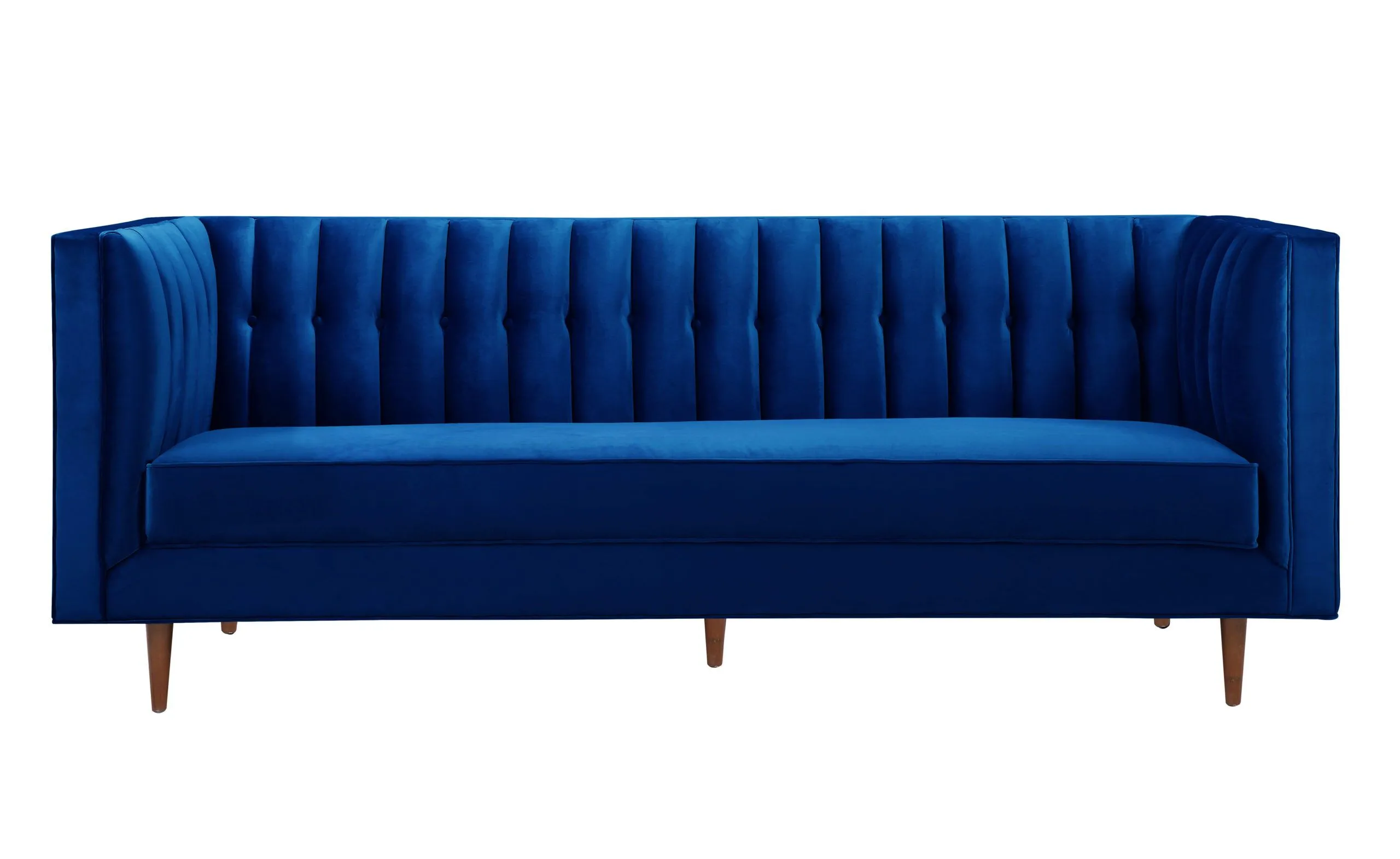 If you are looking for a sofa that’s a showstopper, look no further. Featuring a tuxedo style frame with velvet channel tufting and slim wooden legs the Sebastian offers comfort and style.