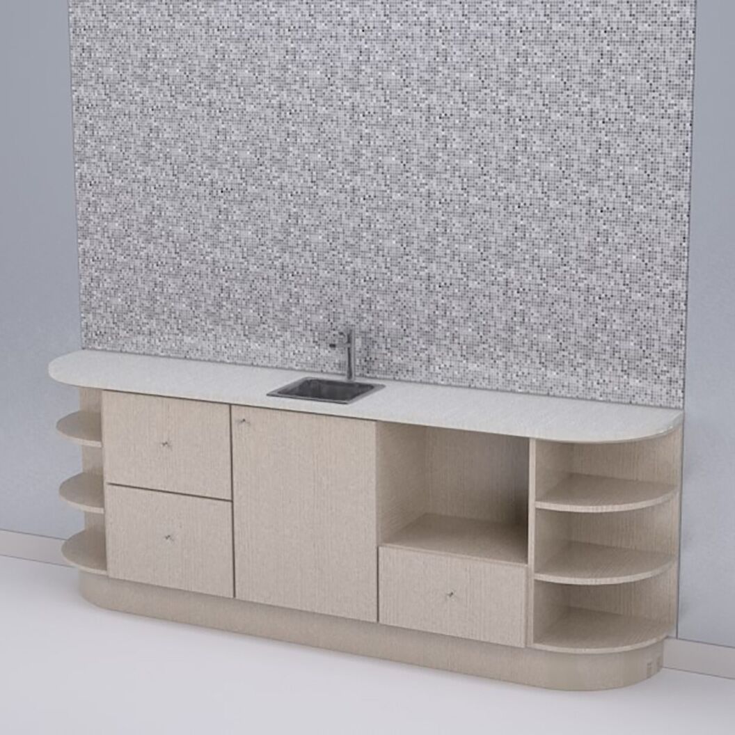 The gently rounded design of our curved treatment room sink cabinet adds a soft, elegant look that stands out in a sea of straight edges. Beyond its looks, this cabinet is all about functionality, with a built-in sink and ample storage to keep essentials neatly tucked away. Crafted from durable materials, it handles the demands of a busy spa while maintaining its polished appearance. Whether you’re refreshing your space or creating a new one, our treatment room sink cabinet with radius display effortlessly combines beauty and utility. It reflects the commitment to quality evident in all our spa cabinets.