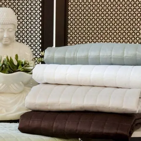 Light weight, yet breathable for the perfect warm weathered blanket. Adds a pop of color to any room- our neutral tones are soothing yet inviting and matches almost all decors.Microfiber Twill 2″ quilted squaresAvailable in: white, cream, tea green, chocolate, and silver blue.Dimensions: 60″x 90″
