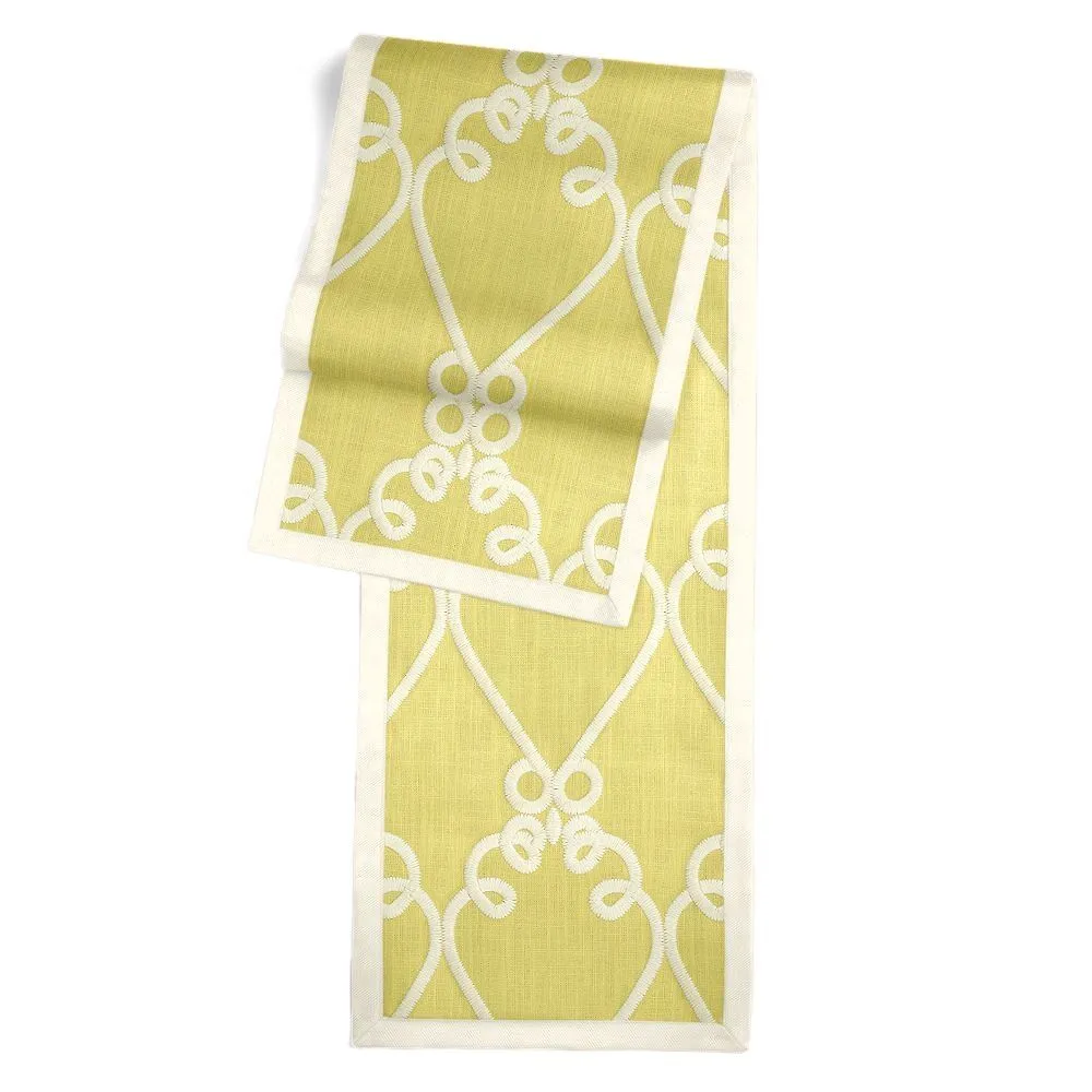 Solid edging adds a touch of refinement, perfectly setting off the center fabric. Brings color and texture to your spa table5/8″ contrast border adds a refined touch100% cotton lining ensures runner lays flat & hangs perfectlyHand made in America in high quality, designer fabricSize: 14″ x 72″