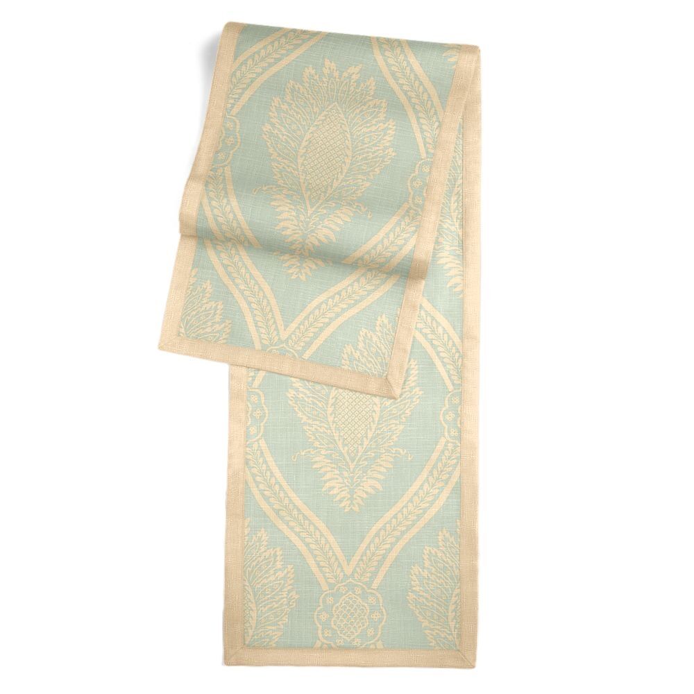 Solid edging adds a touch of refinement, perfectly setting off the center fabric. Brings color and texture to your spa table5/8″ contrast border adds a refined touch100% cotton lining ensures runner lays flat & hangs perfectlyHand made in America in high quality, designer fabricSize: 14″ x 72″