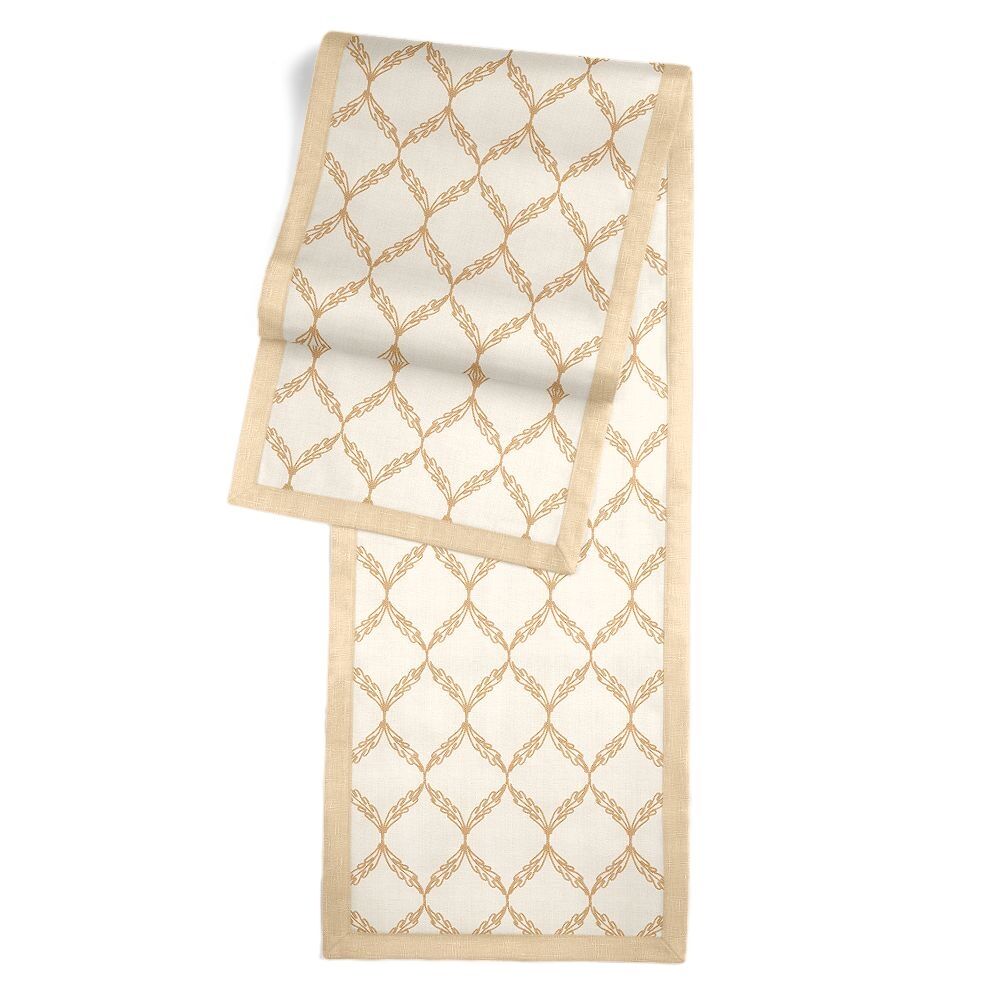 Solid edging adds a touch of refinement, perfectly setting off the center fabric. We love it in this beige trellis crewel embroidered on cream cotton for a look that’s classic with a touch of casual. Brings color and texture to your spa table 5/8″ contrast border adds a refined touch 100% cotton lining ensures runner lays flat & hangs perfectly Hand made in America in high quality, designer fabric Size: 14″ x 72″