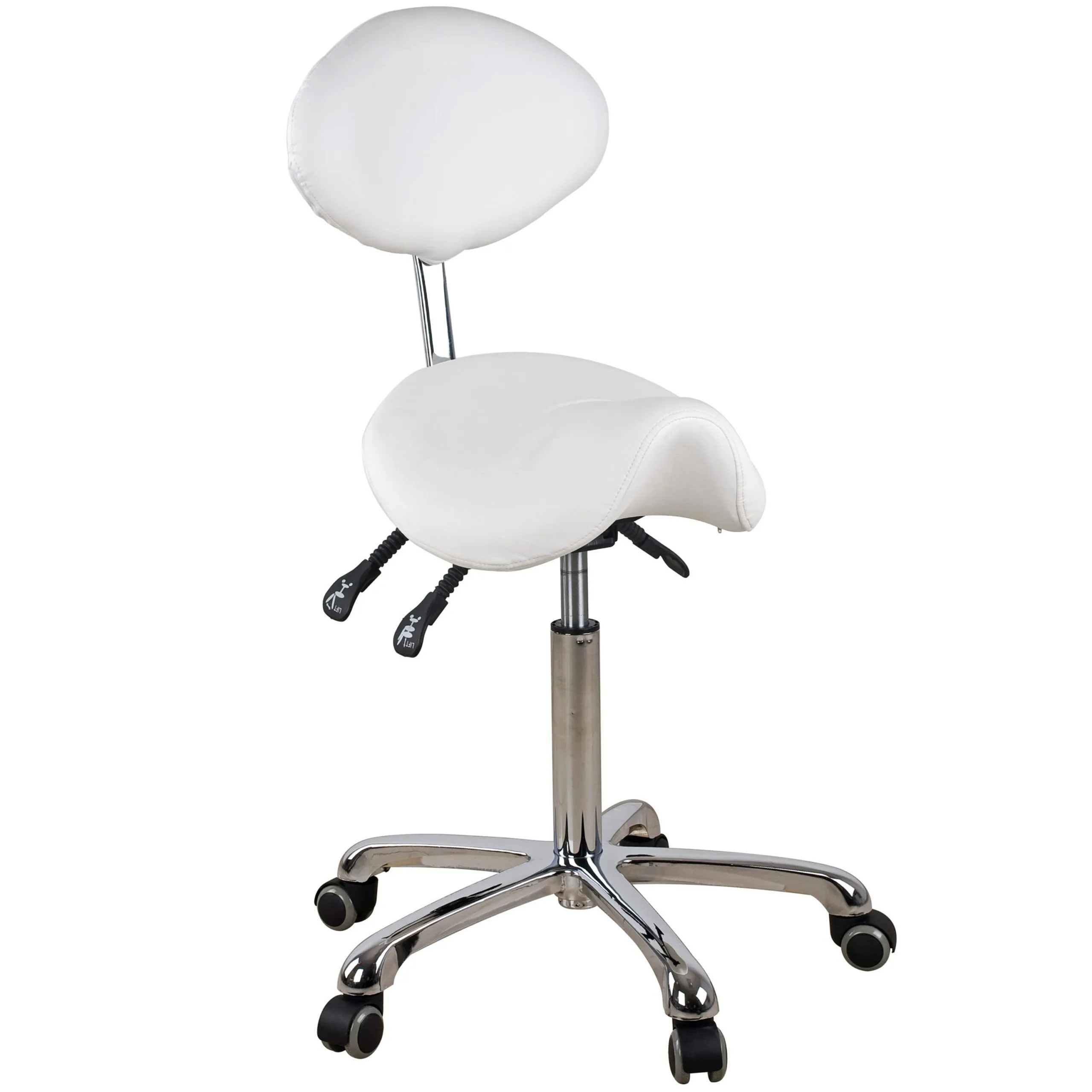 Elegant stool with a wraparound backrest ergonomically designed with a saddle-shaped seat to ensure maximum comfort.