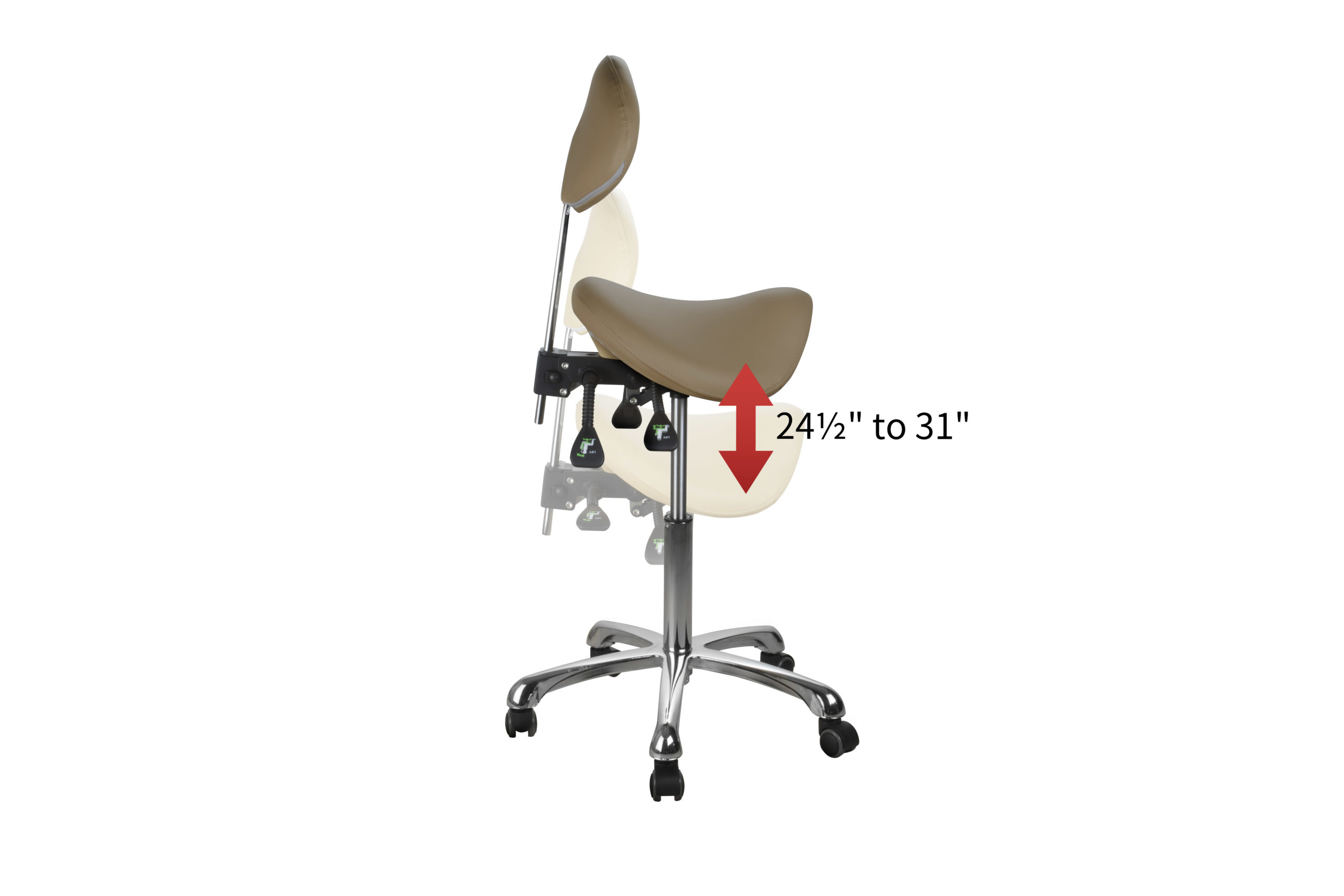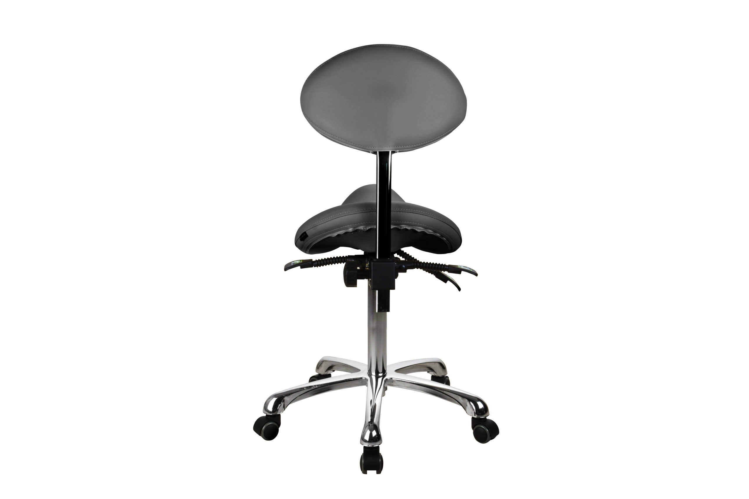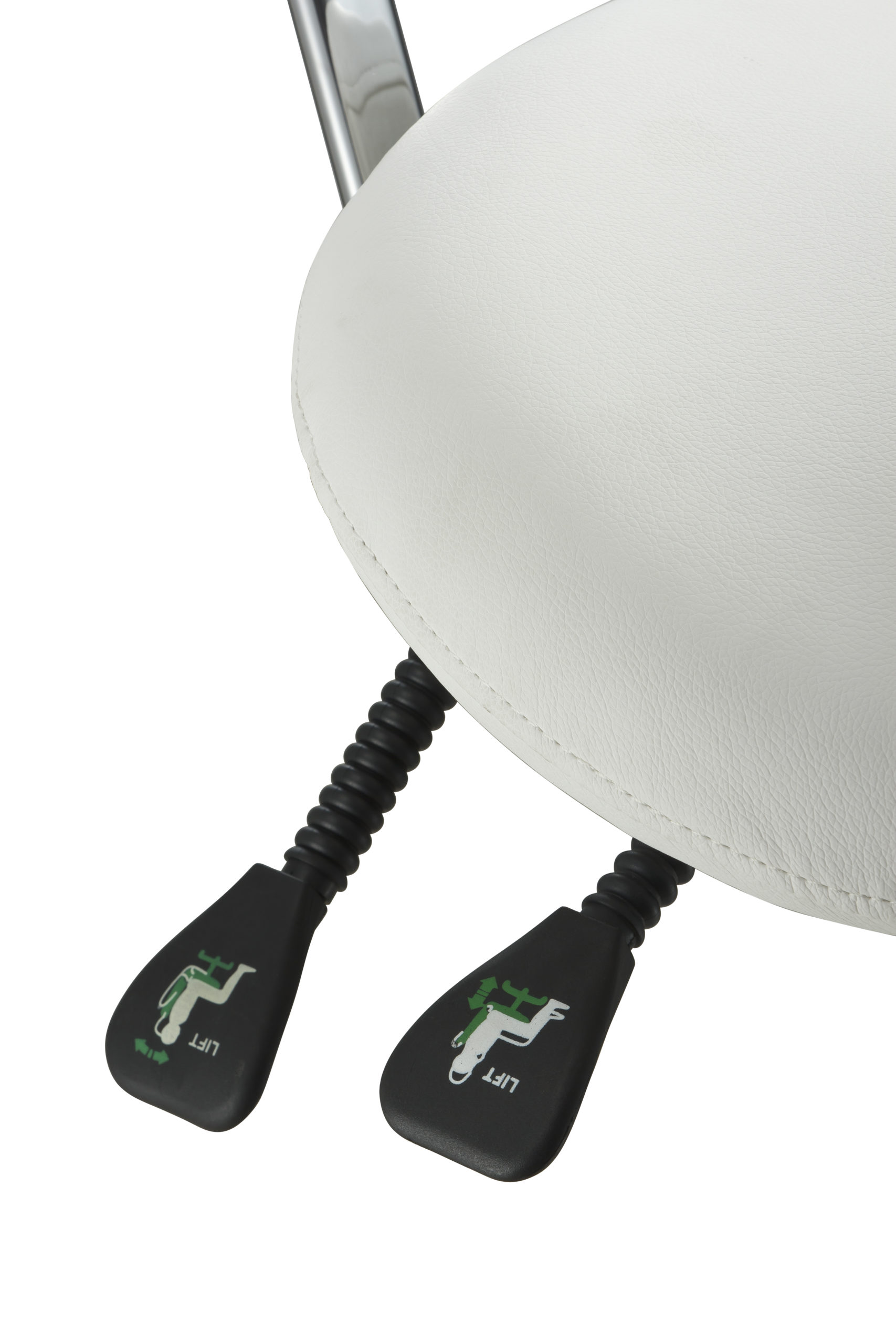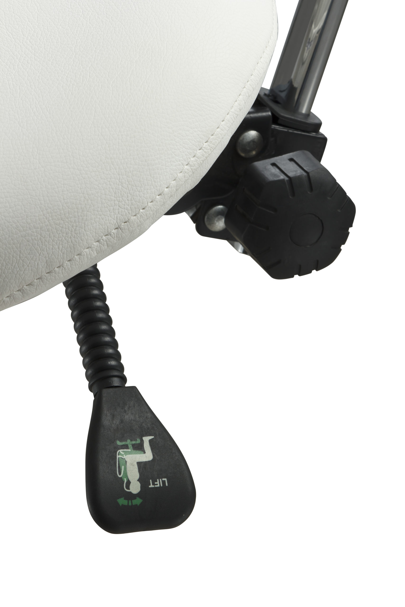 The esthetician chair is equipped with 3 gas lift levers to adjust height, backrest and seat inclination.