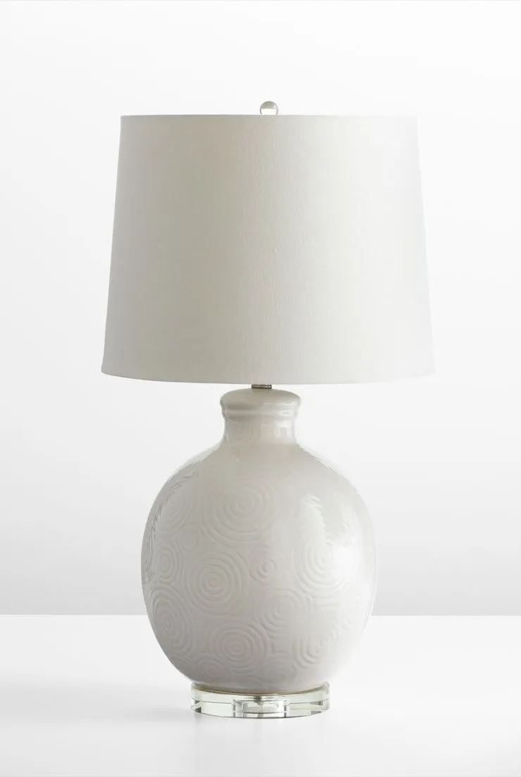 Ceramic / Crystal Base / White Fabric Shade / Satin White Lining