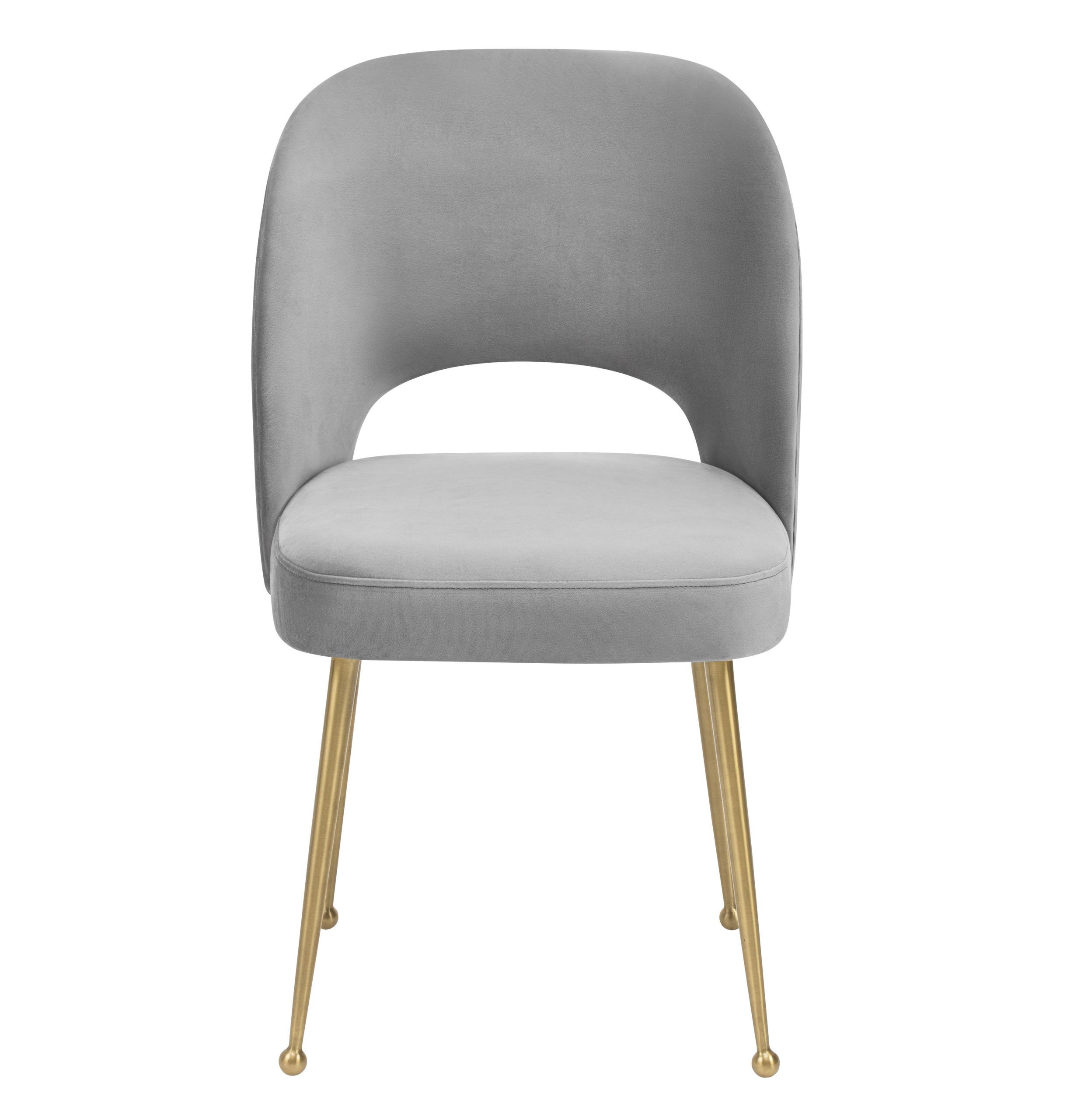 The Swell chair offers the perfect blend of Mid Century Modern and Hollywood Glam. With sumptuous velvet upholstery and gold antenna shaped steel legs this chair is a definite winner and is versatile to match any decor. Available in blush, dark grey, light grey, or sea blue.