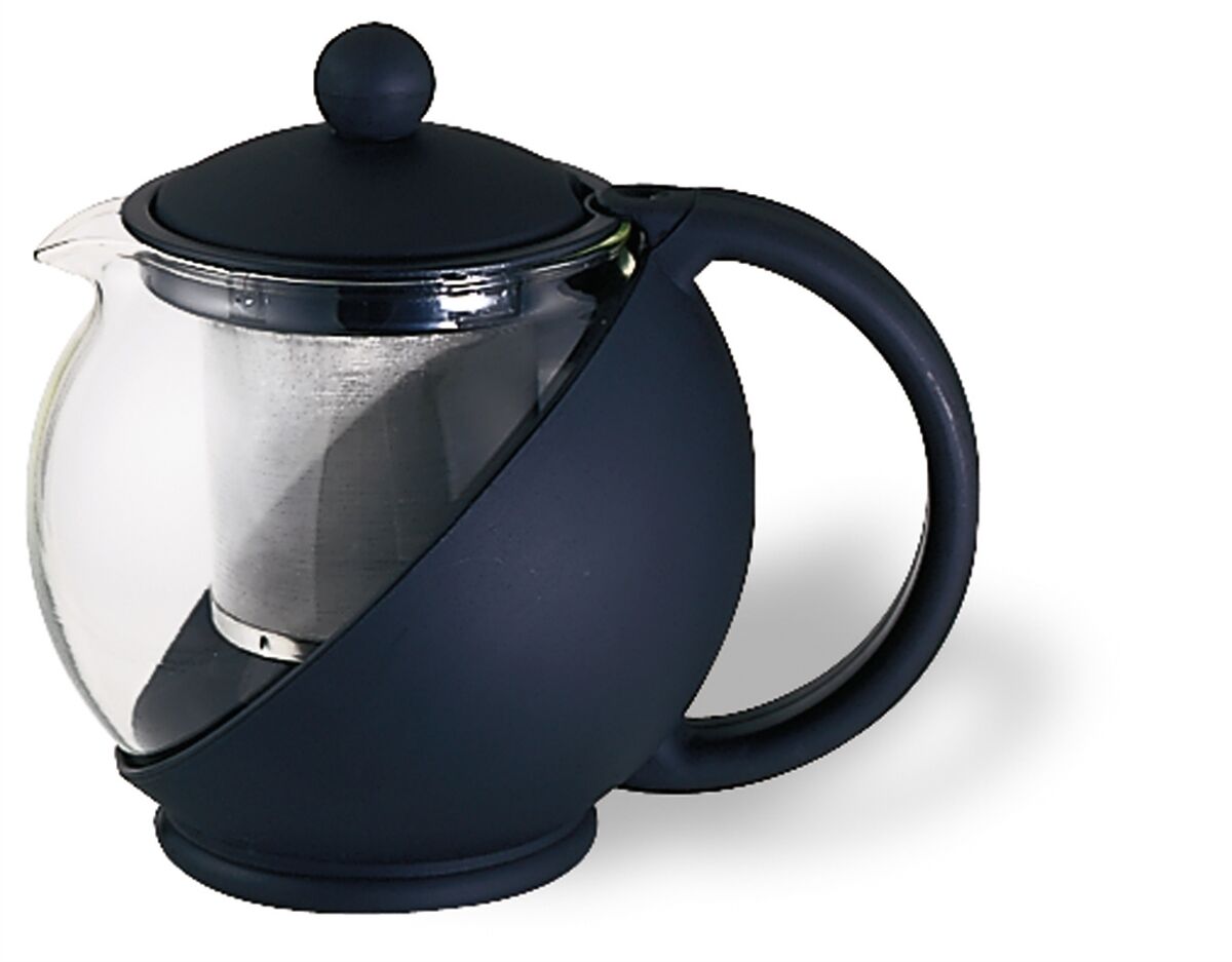 ne of our most popular tea servers, the Tea Ball has a look you would recognize anywhere. With a removable infuser basket for loose leaf tea, it’s a great addition to your table. Constructed from black plastic with glass liner Hand WashDimension L x W x H (height without lid):4 X 6 X 5.25 – 20oz