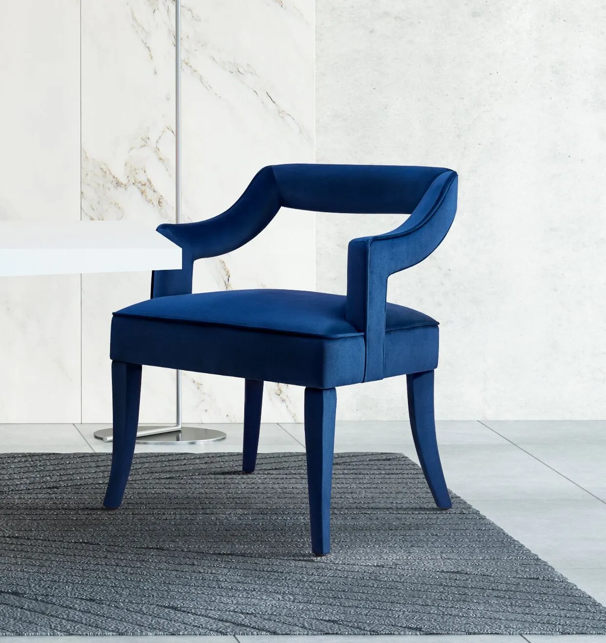 Striking the perfect balance of sleek and chic, the Tiffany chair will complement any room. Available in sumptuous Grey, Navy or Pink.