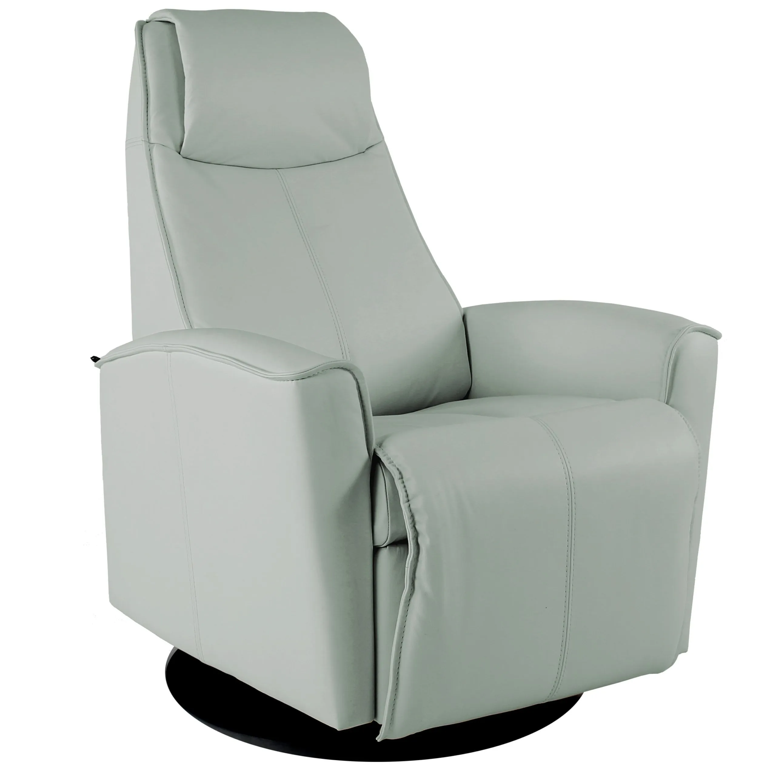 Our Ugo is featuring an adjustable head pillow and manual release headrest angle, makes the seating experience ergonomic and gives your lower back correct support. The Ugo is a 170 degree swivel/glider/rocker recliner available in motorized and manual versions. The design is available in two sizes, small and large. Black base is standard on Urban. The Ugo is a 170 degree swivel recliner that combines the distinct comfort of our classic recliners with the modern function of motorized glider/recliner. Our Ugo features a narrower, refined look, suitable for many interior styles. Available in leather select fabrics; Seagreen, Shadow Grey and Latte.