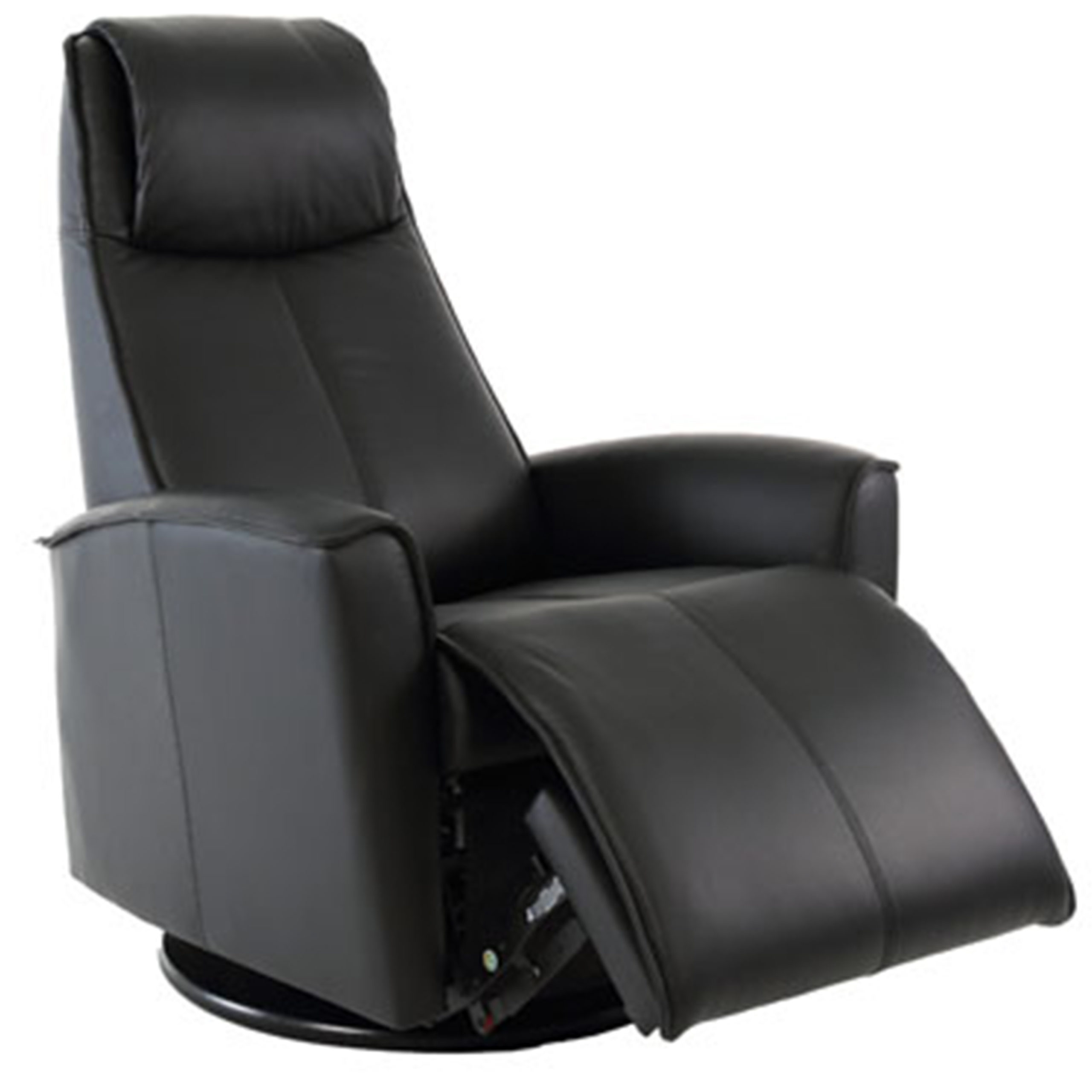 Our Ugo is featuring an adjustable head pillow and manual release headrest angle, makes the seating experience ergonomic and gives your lower back correct support. The Ugo is a 170 degree swivel/glider/rocker recliner available in motorized and manual versions. The design is available in two sizes, small and large. Black base is standard on Urban. The Ugo is a 170 degree swivel recliner that combines the distinct comfort of our classic recliners with the modern function of motorized glider/recliner. Our Ugo features a narrower, refined look, suitable for many interior styles. Available in leather select fabrics; Seagreen, Shadow Grey and Latte.