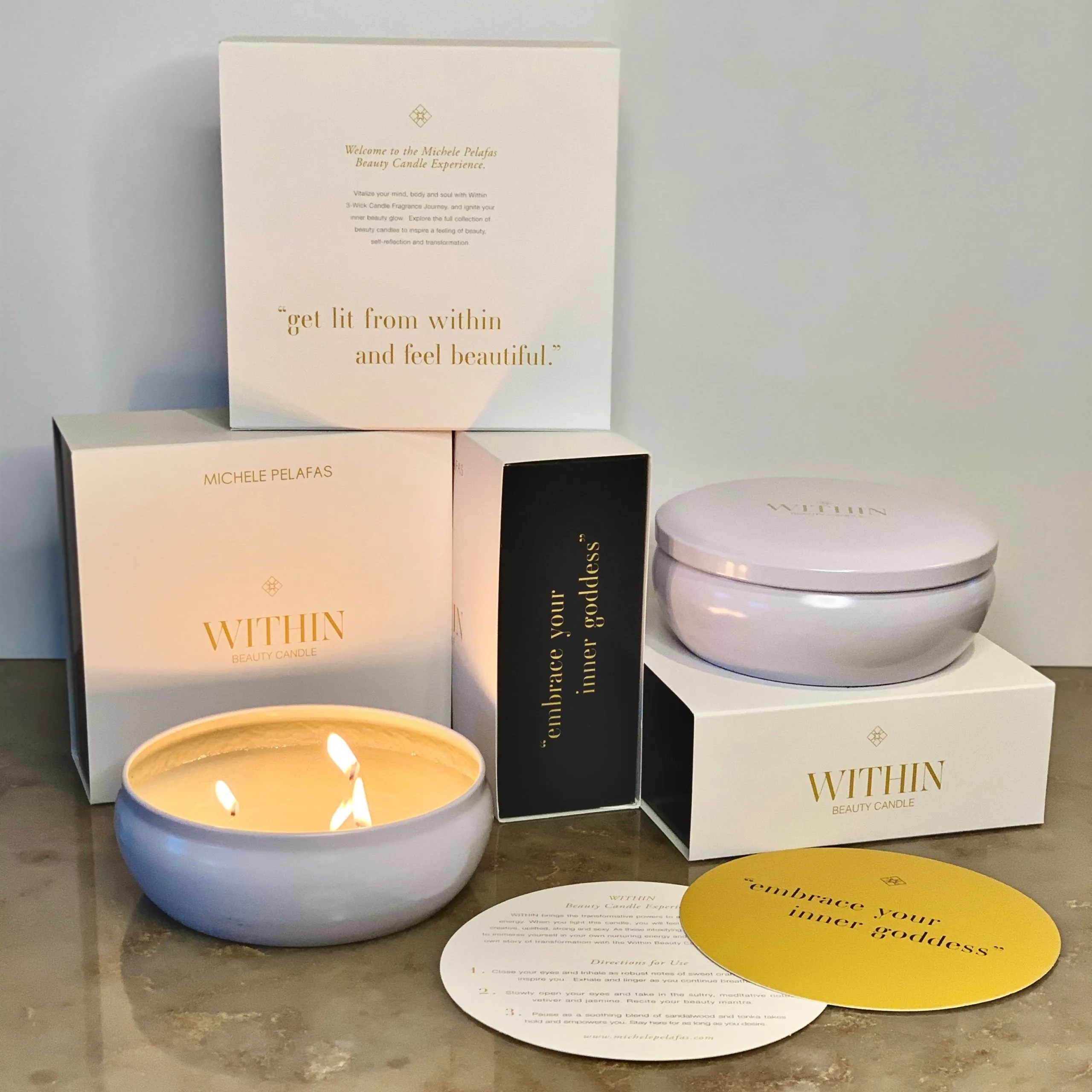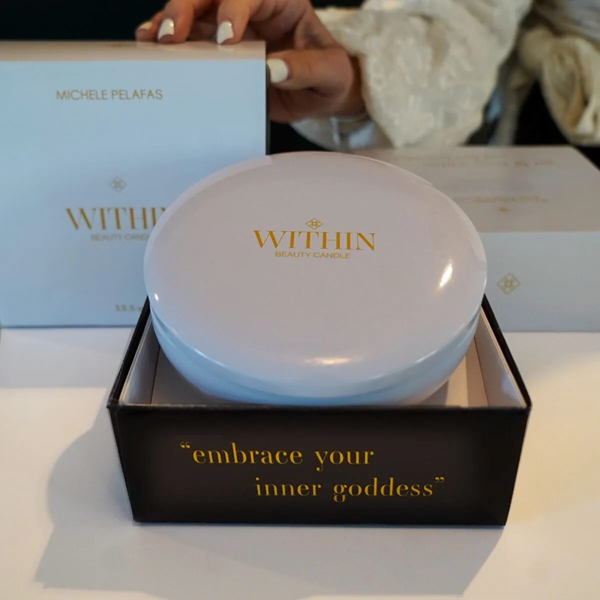 Within Beauty Candle brings the transformative powers to awaken your feminine energy. You feel empowered, grounded, creative, uplifted, strong and sexy. As these intoxifying scents unfold, be prepared to immerse yourself in your own nurturing energy and wisdom. 100% all natural cotton wick without coating.