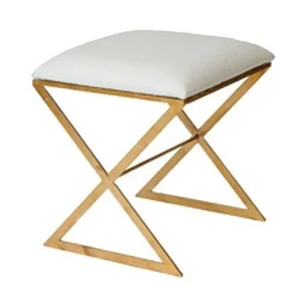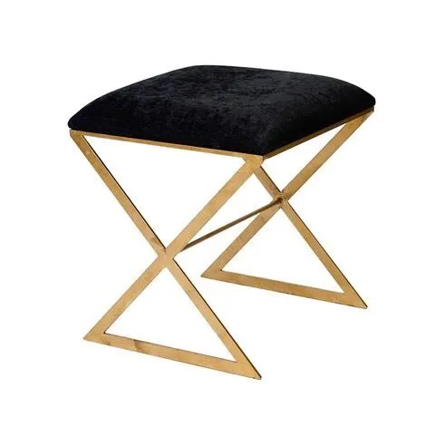 X-Base side & vanity stool in gold leaf with velvet top. Available in black, chocolate, and white.Dimensions: 18″W X 18″H X 18″D